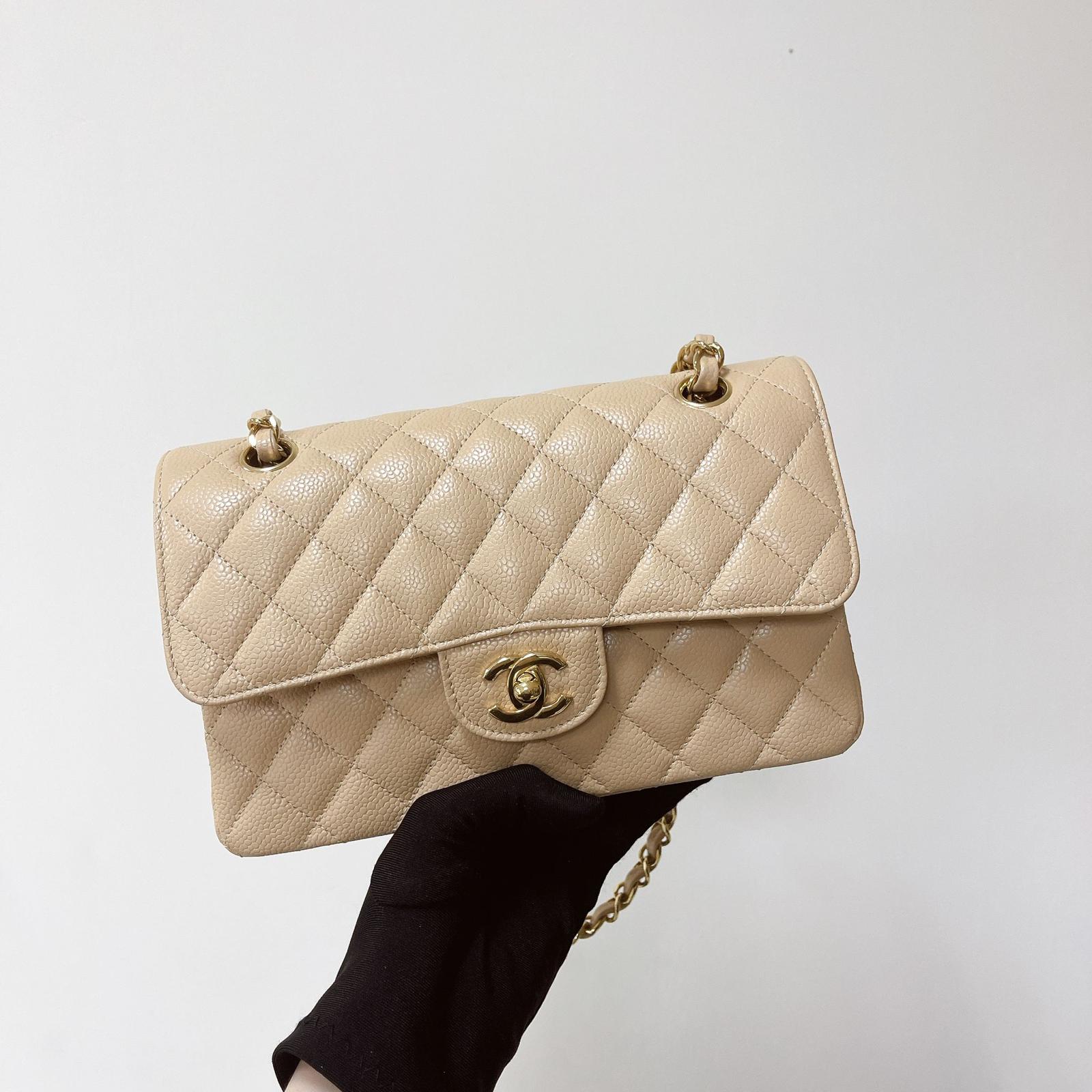 Chanel beige caviar small classic flap gold hdw, 2024. Comes with box, dustbag, microchip and entrupy certificate.