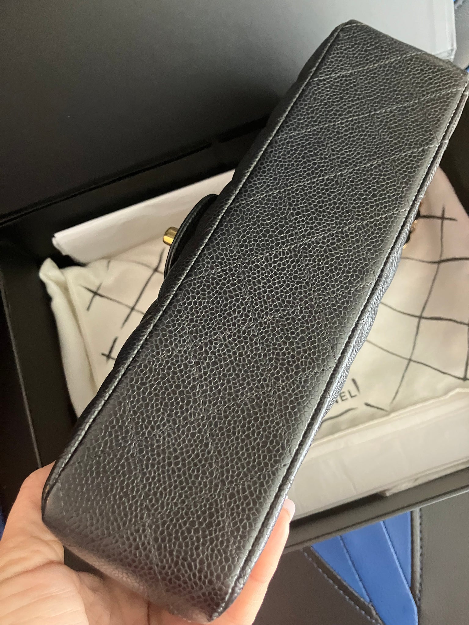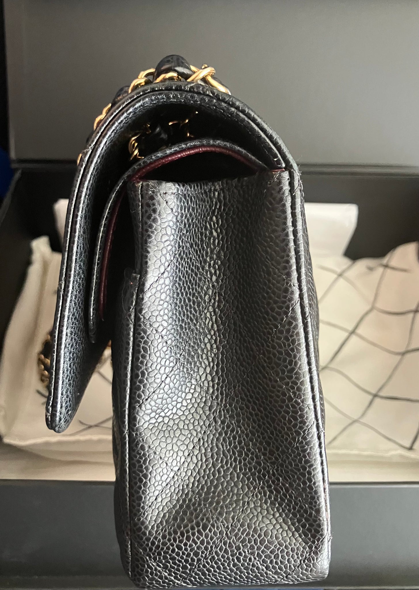 • Load image into Gallery viewer, Chanel black caviar medium classic flap, gold hdw