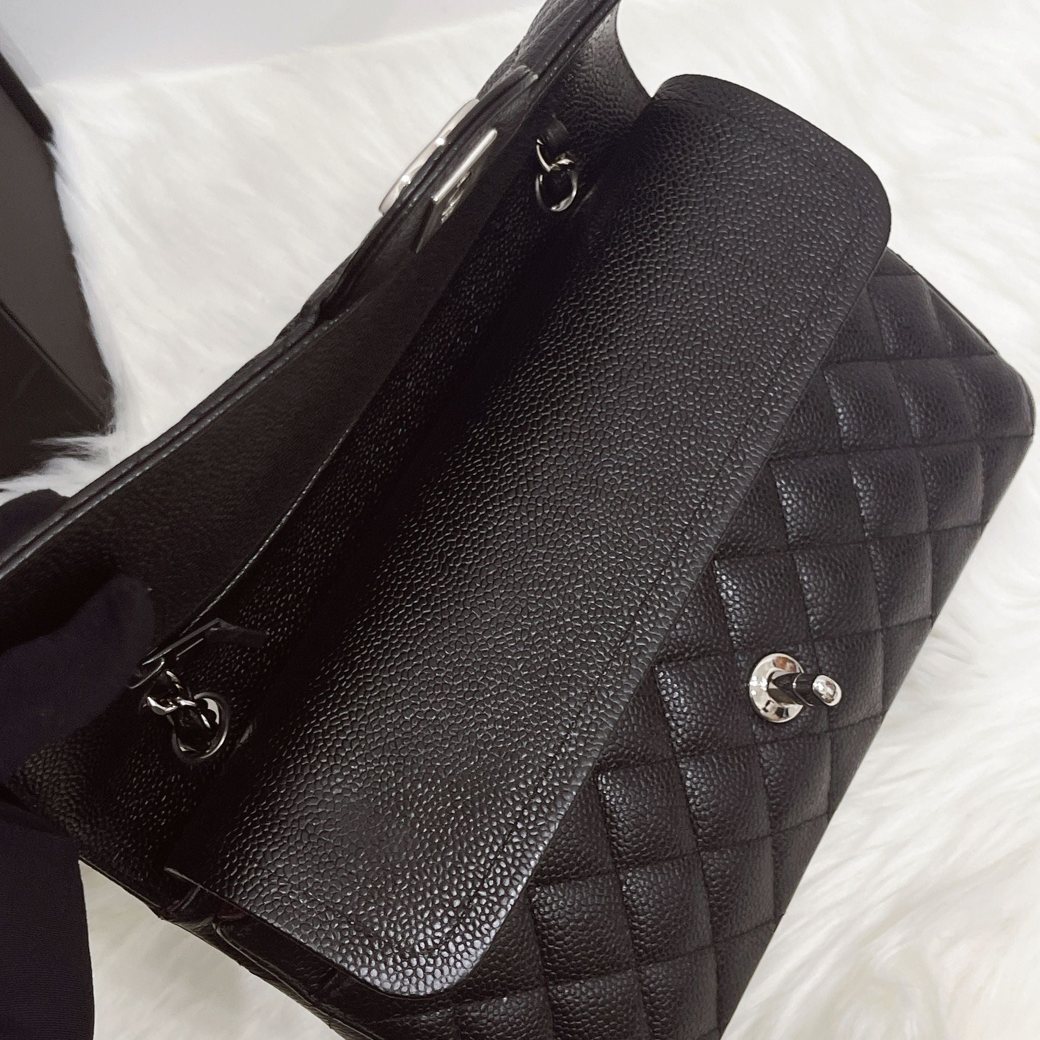 Chanel black caviar medium classic flap, silver hdw 30 series. Comes with box, dustbag, authenticity card and entrupy certificate of authentication.