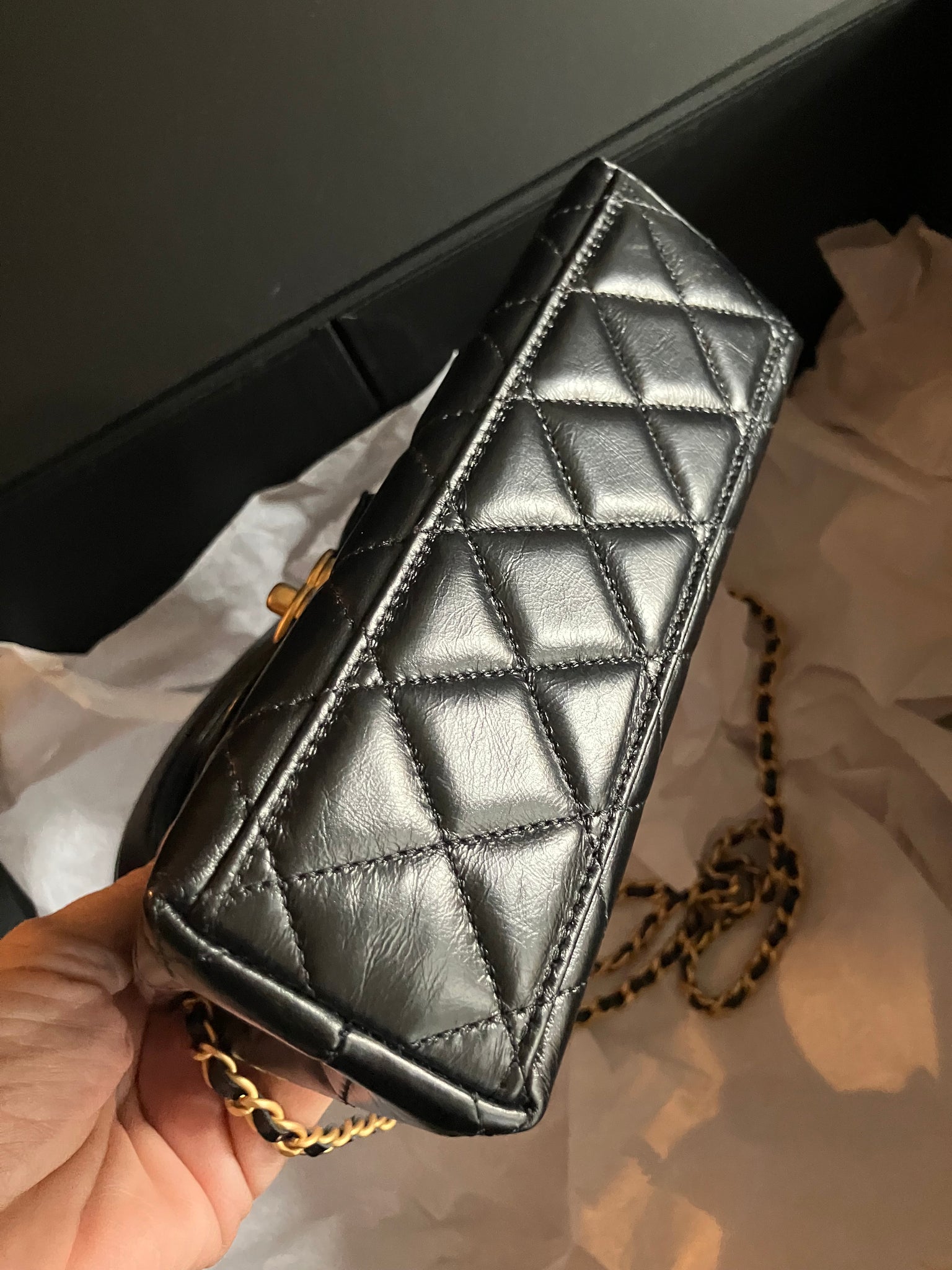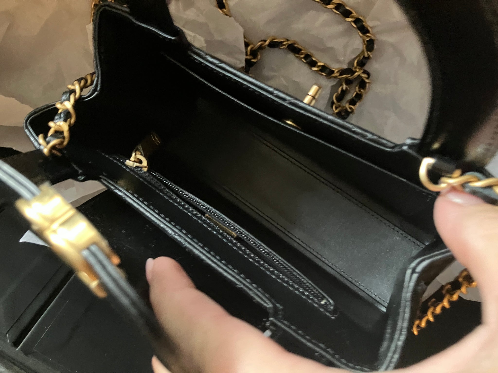 Chanel black Kelly shopper nano (larger size) in shiny calfskin, gold hdw. Full set with box, dustbag, chip and entrupy certificate of authenticity