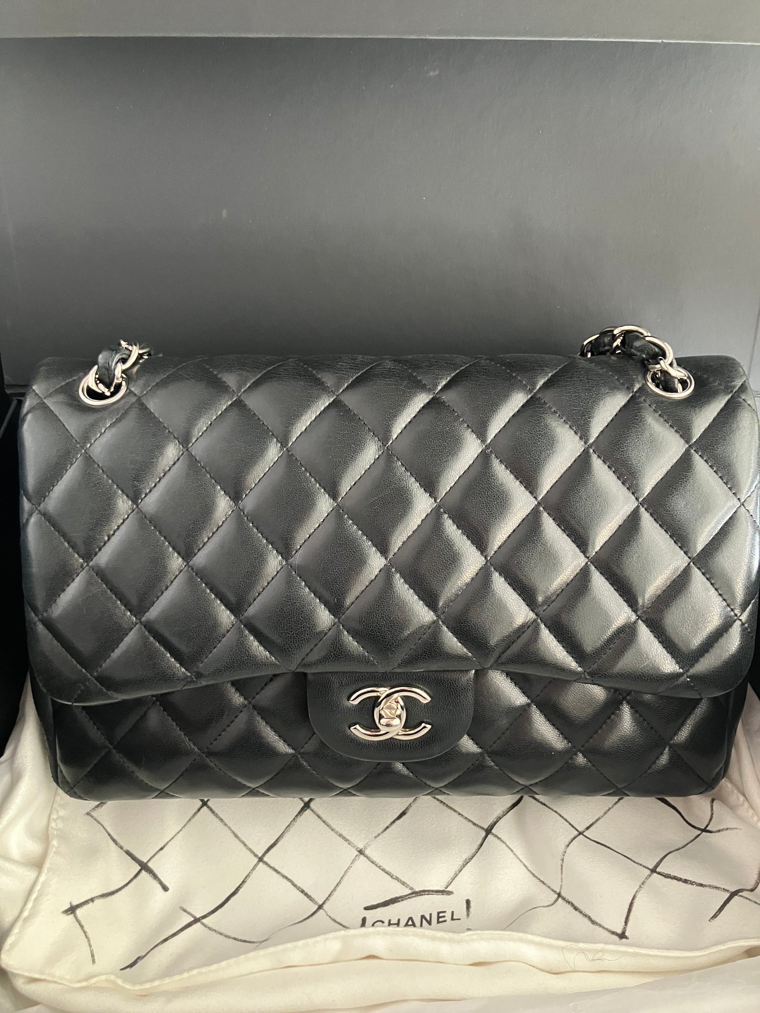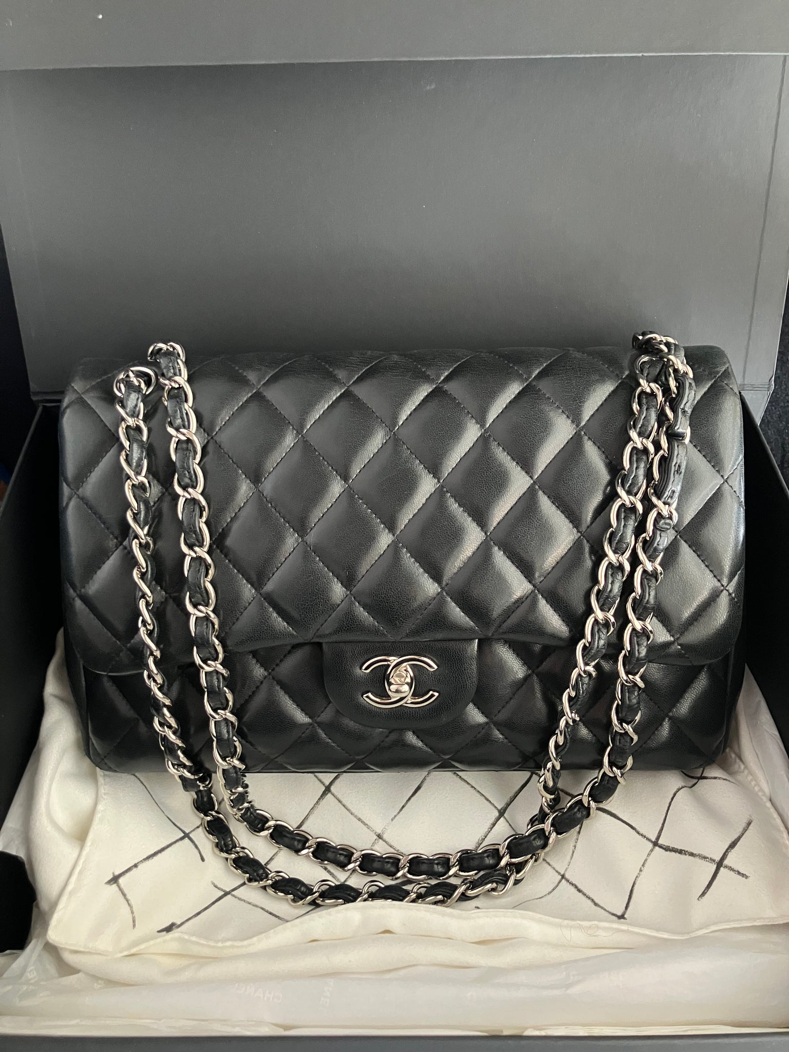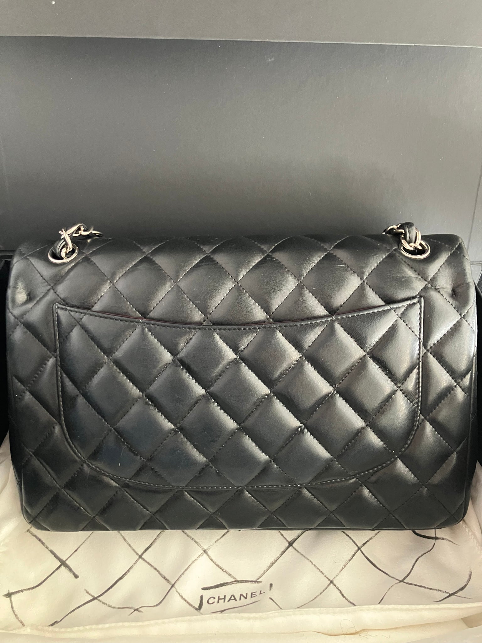 Chanel black lambskin jumbo, silver hdw. Comes with box, dustbag, authenticity card and authenticity certificate. 16 series