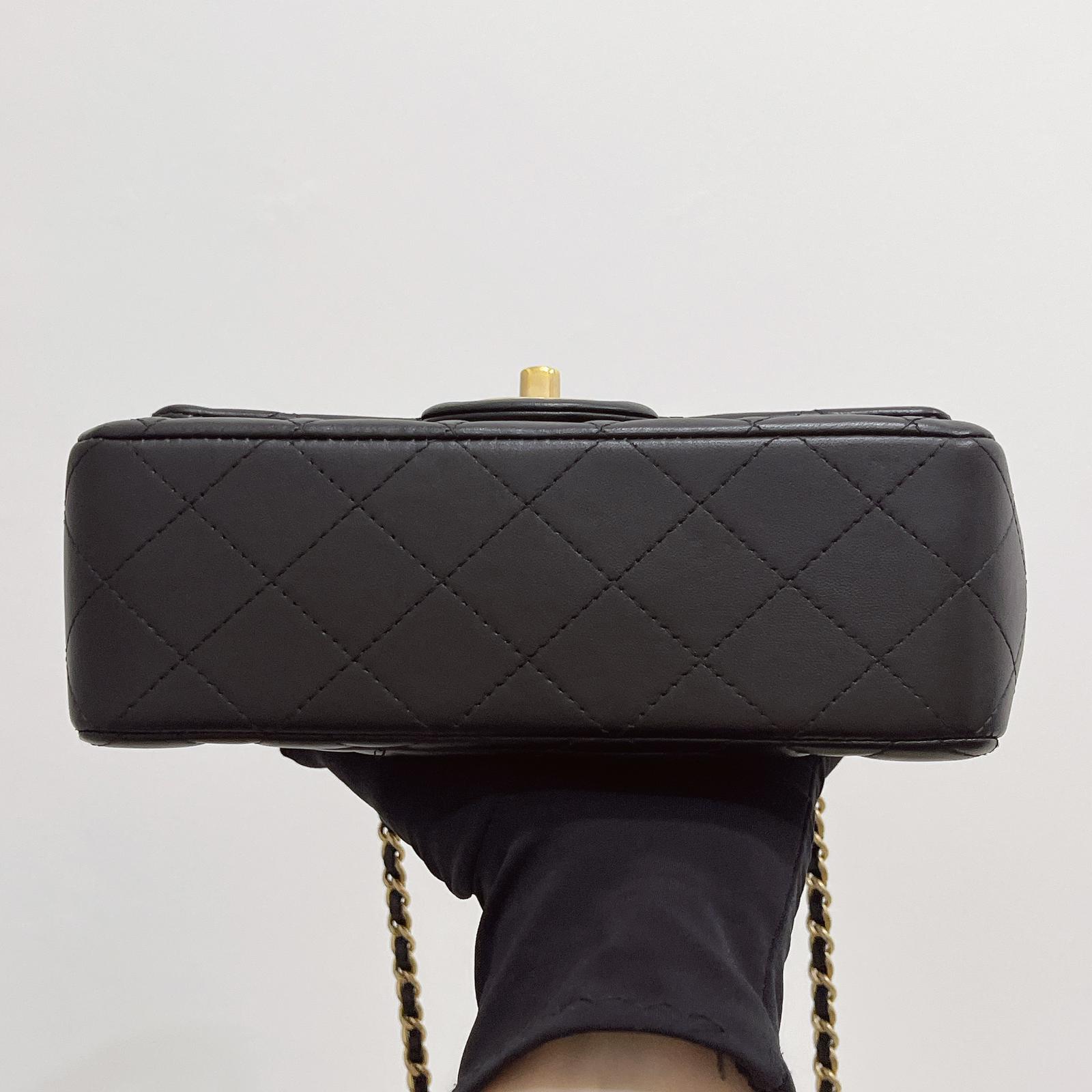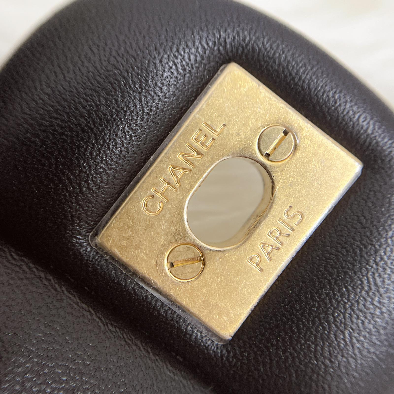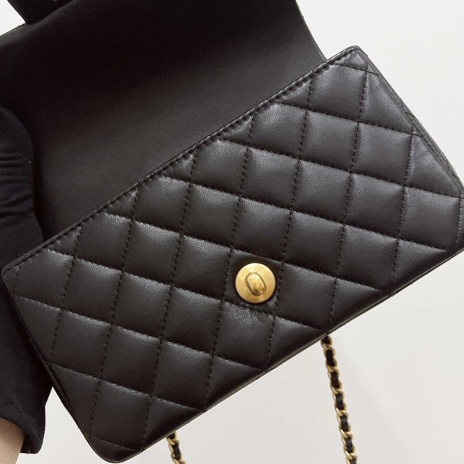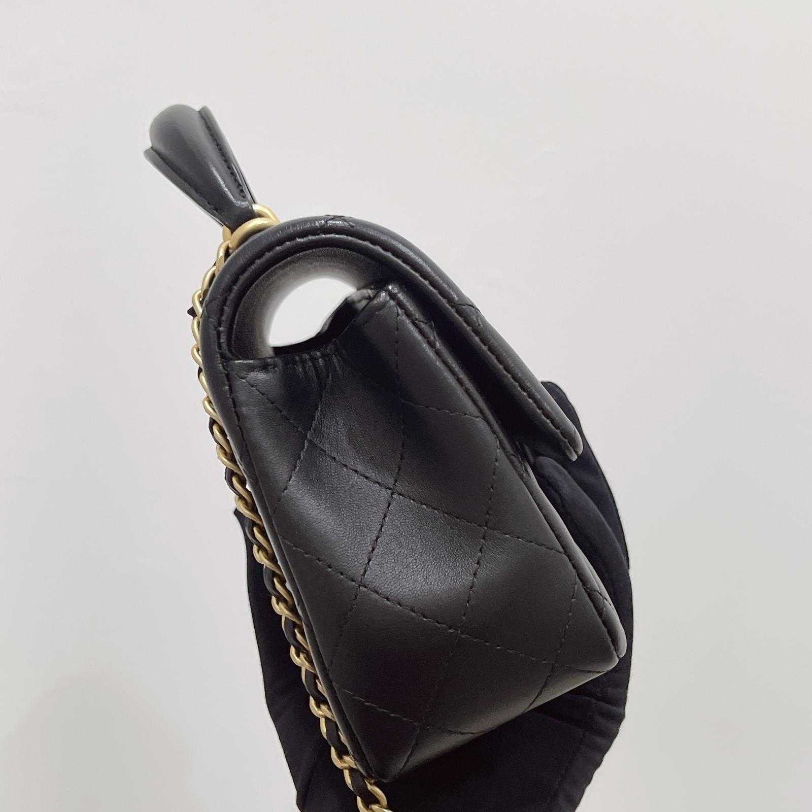 Chanel black mini lambskin, 20cm with top handle and gold hdw. Comes with box, dust bag, chip and entrupy certificate