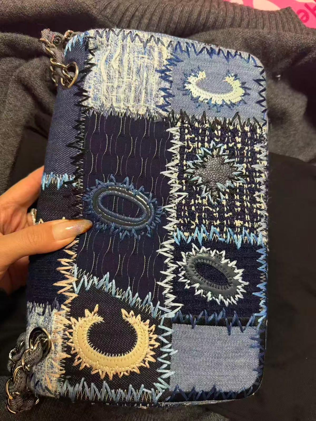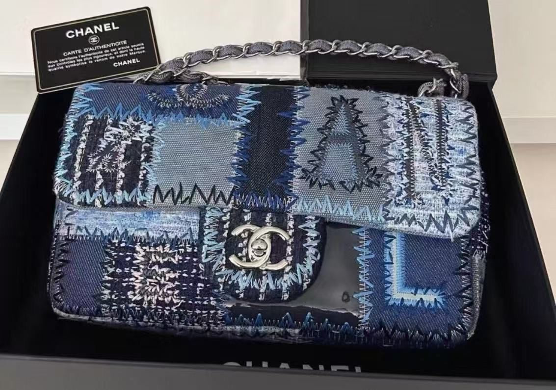 Very Rare Chanel denim patchwork bag medium with silver hdw. Comes with box, authenticity card, dustbag and entrupy certificate