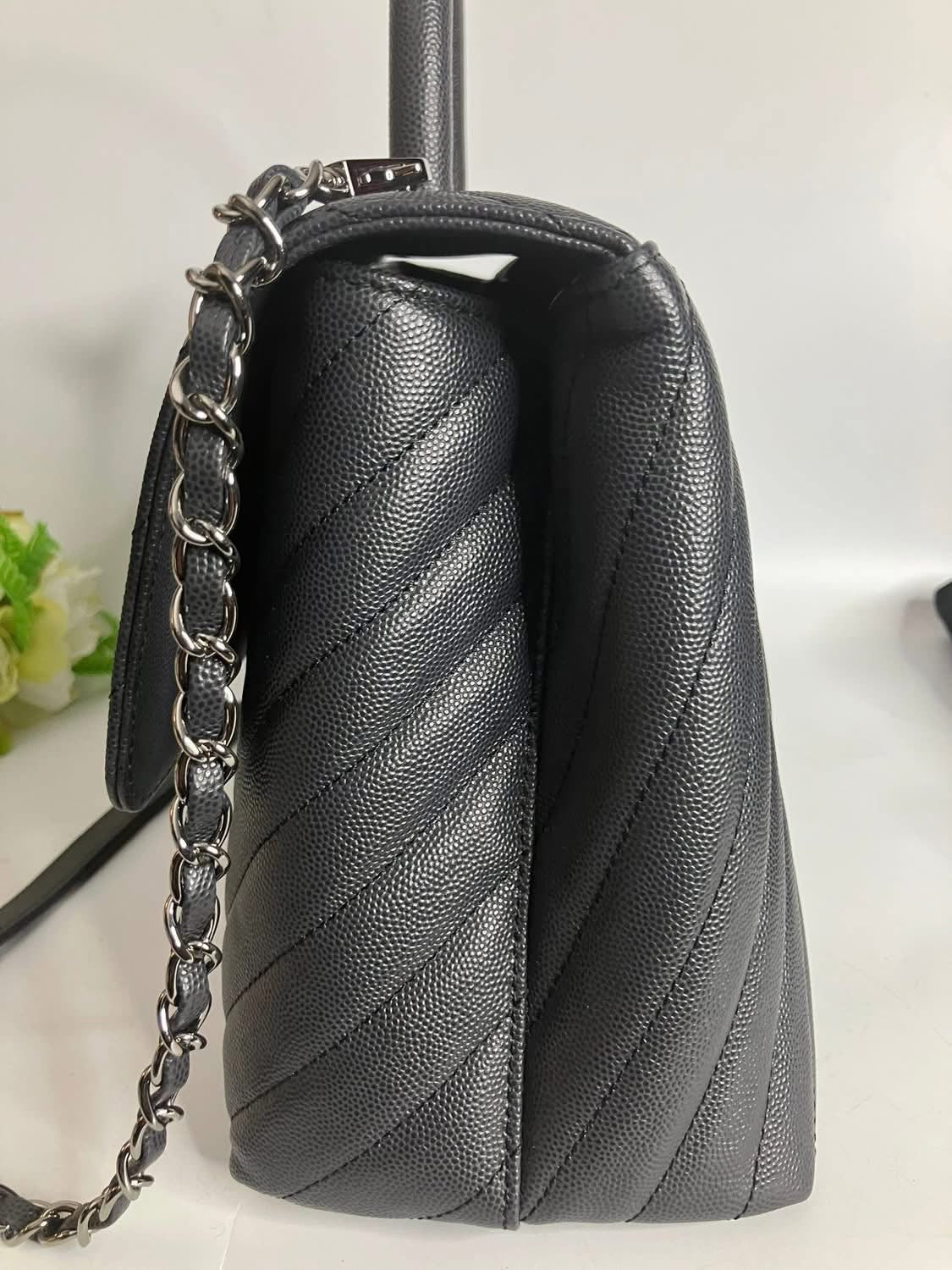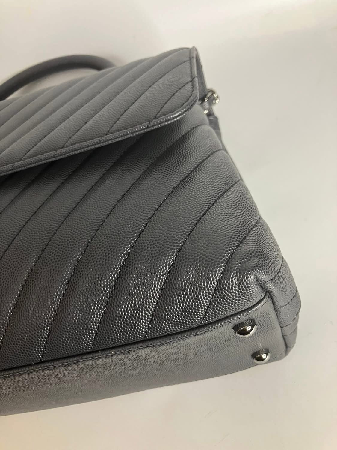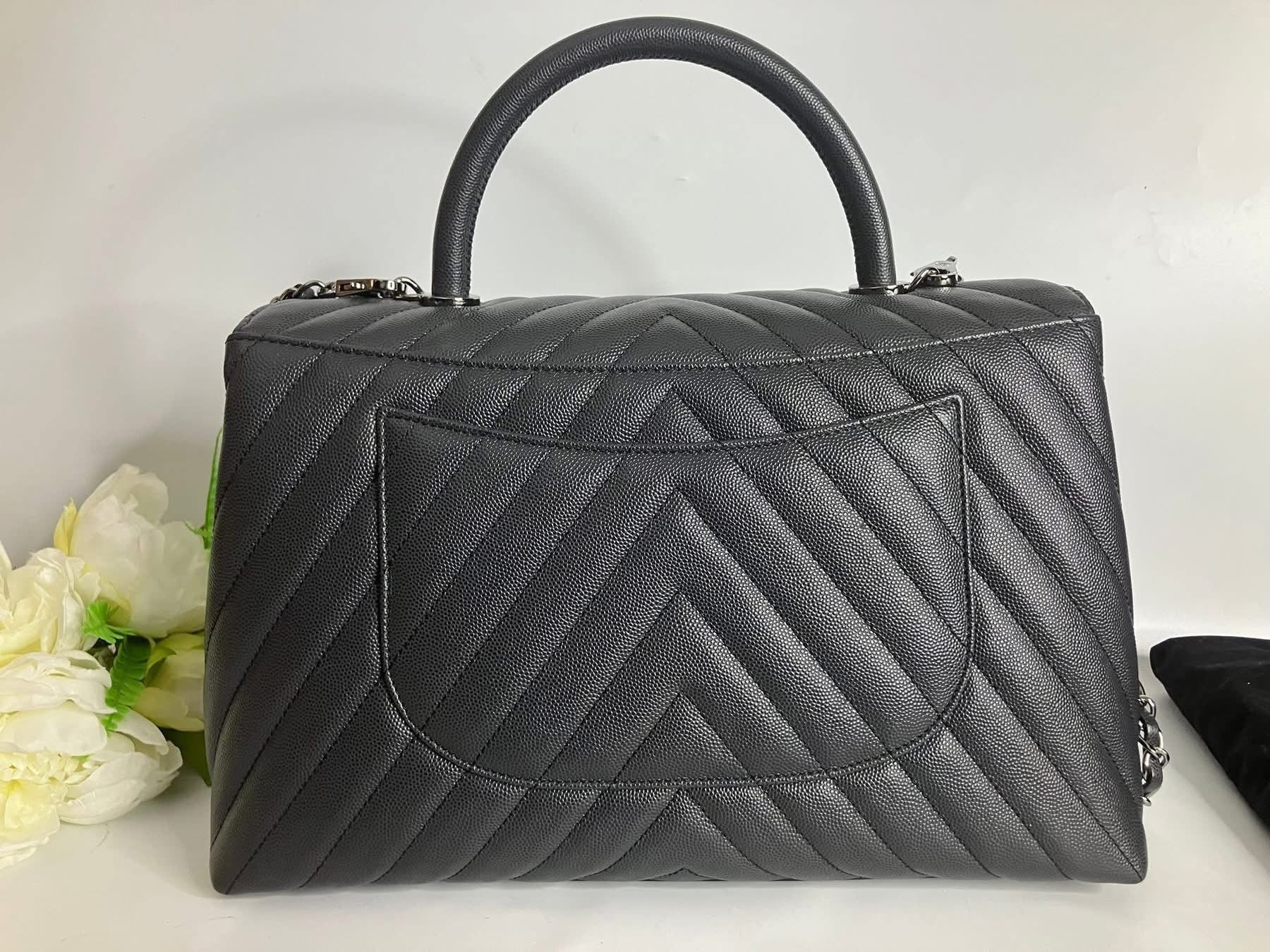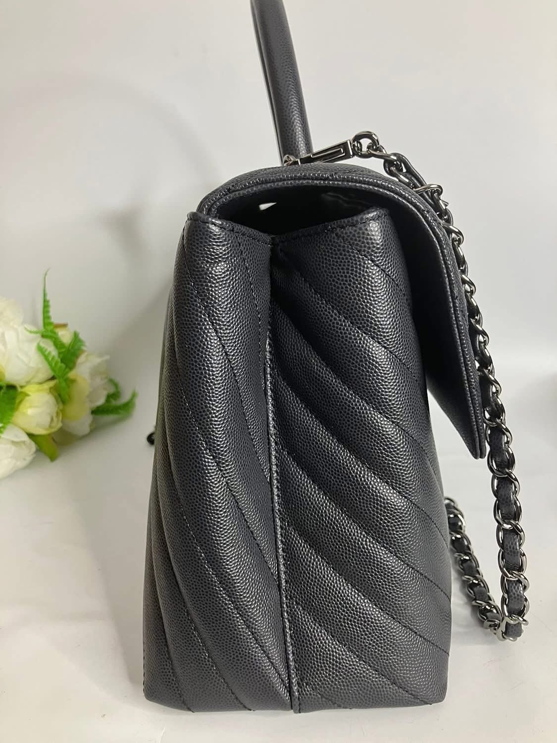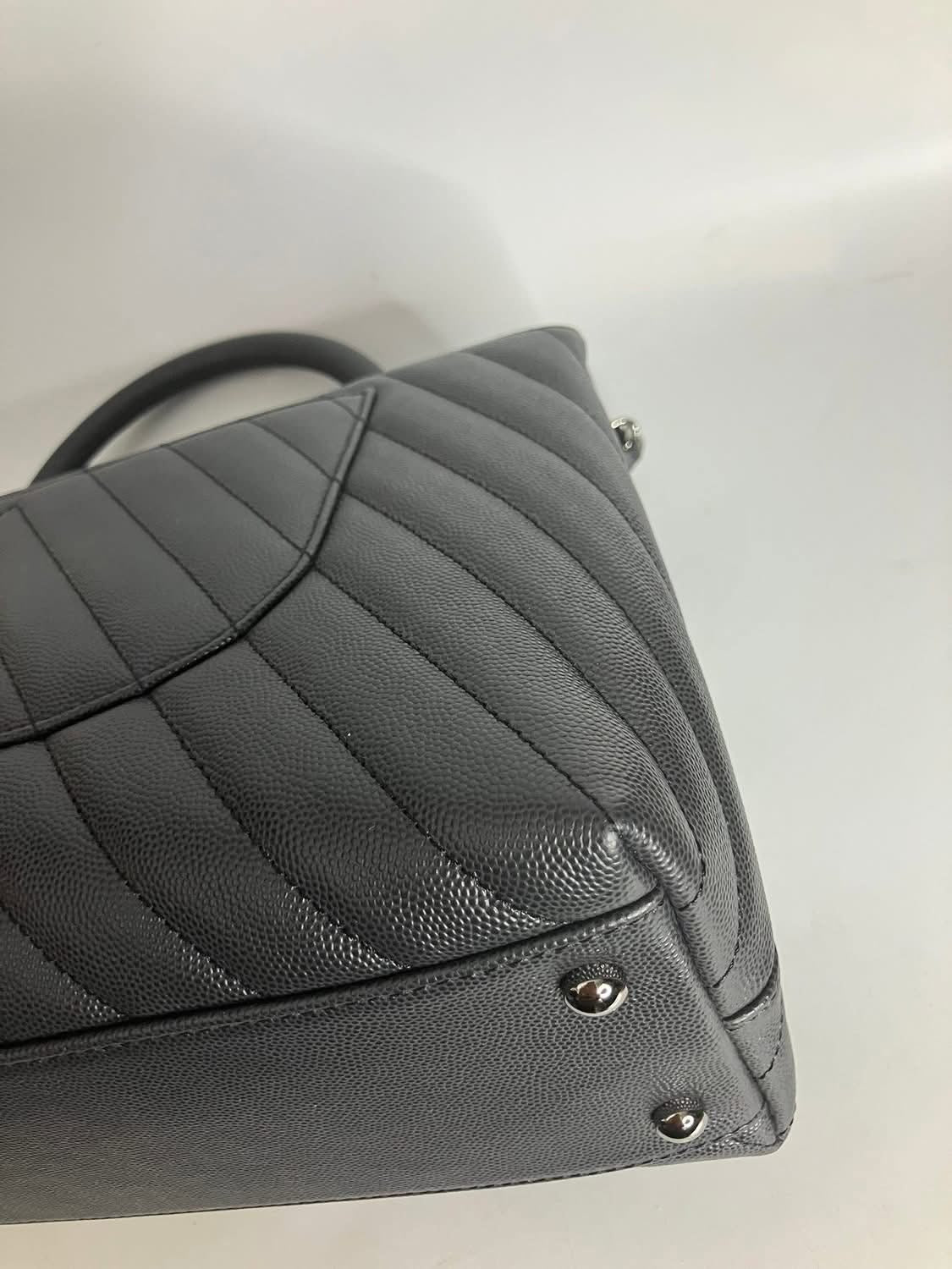 Chanel Large grey caviar coco handle, silver hdw. Comes with authenticity card, dustbag and receipt (no box)