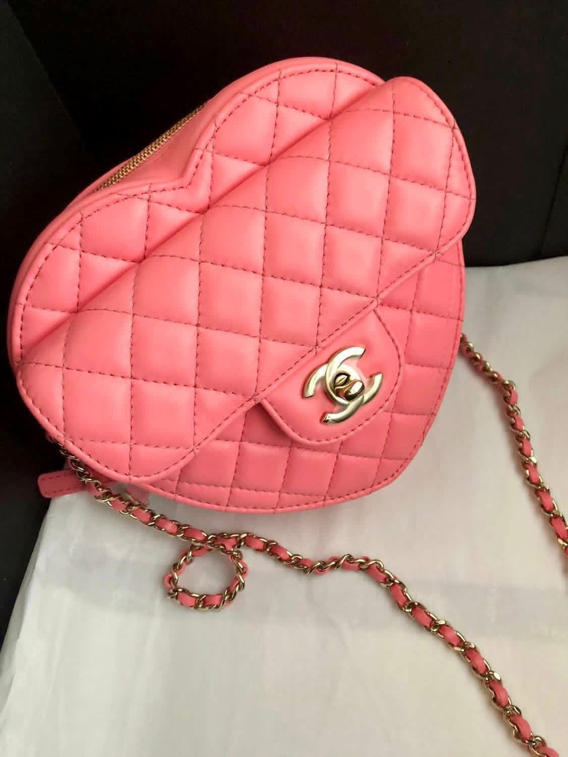 Chanel Pink 22s CC in love lambskin large heart bag. Excellent condition with Samorga insert, dustbag, chip and entrupy certificate