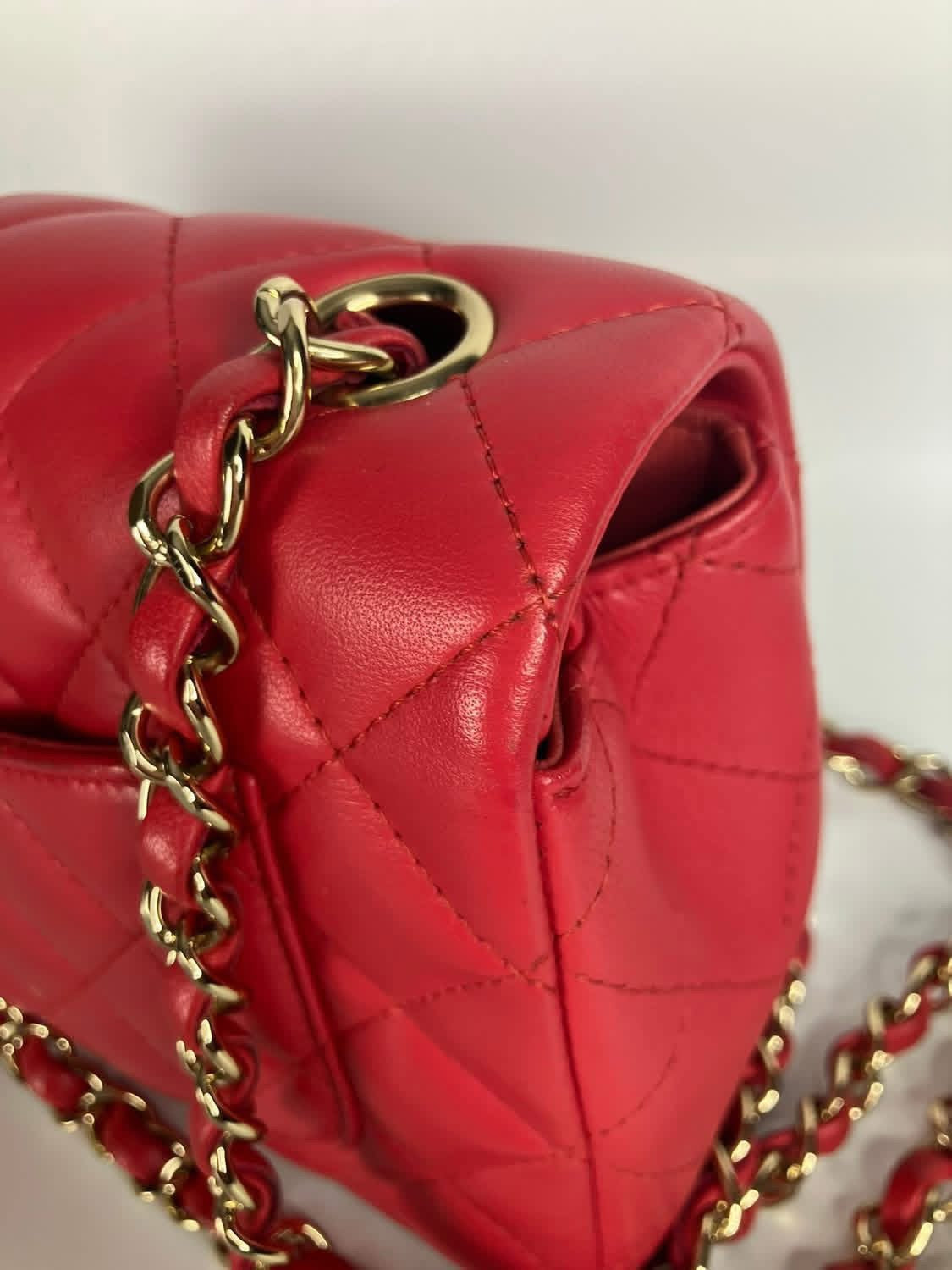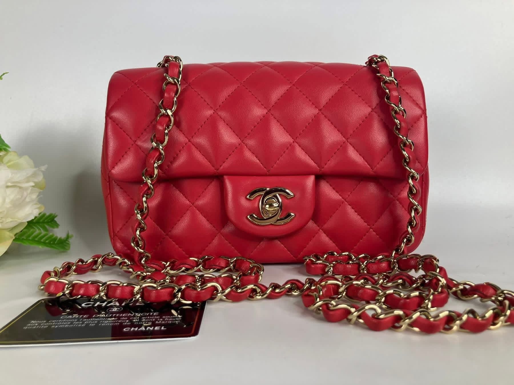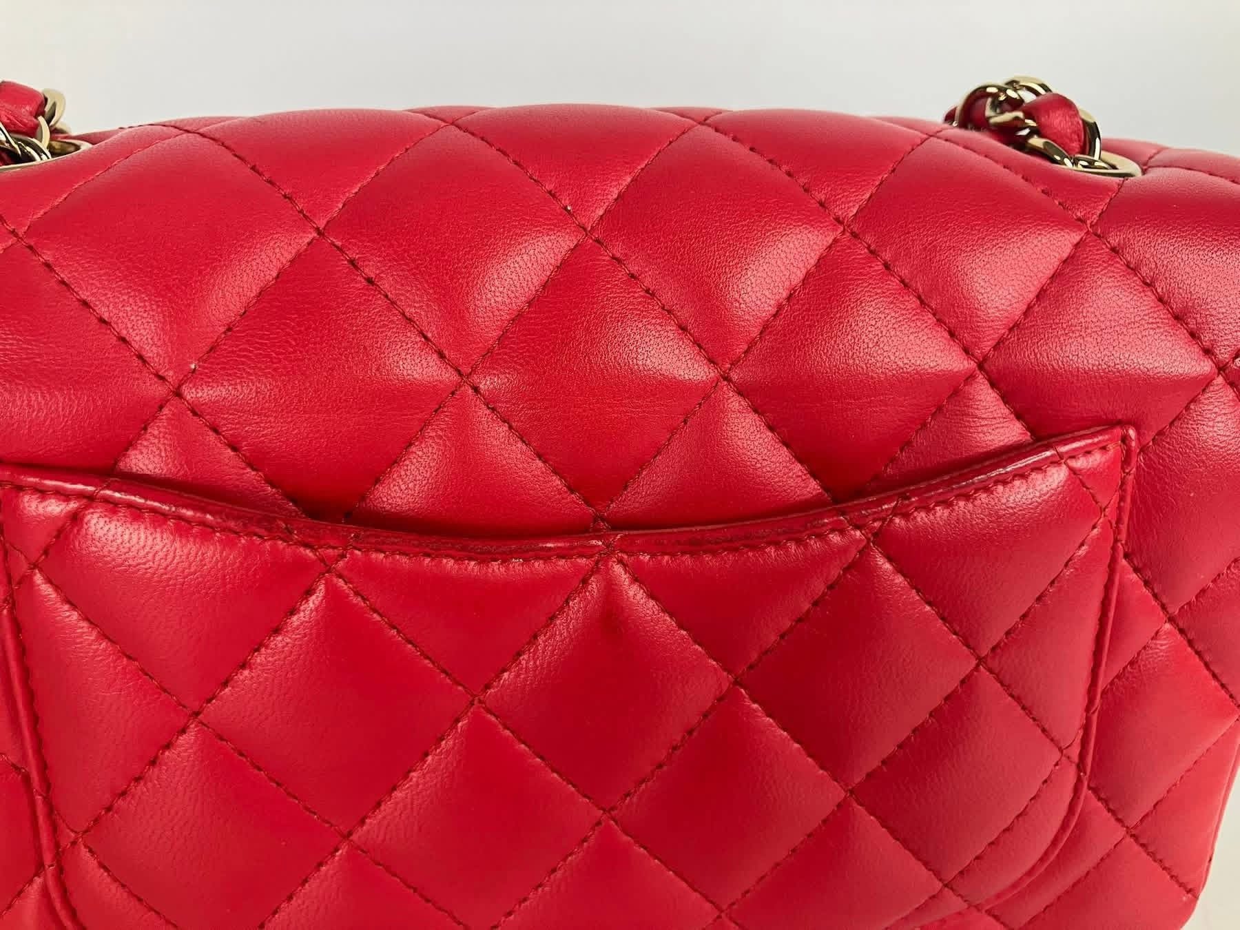 Chanel Pink/red mini lambskin with gold hdw. Comes with entrupy, card and dustbag, 24 series