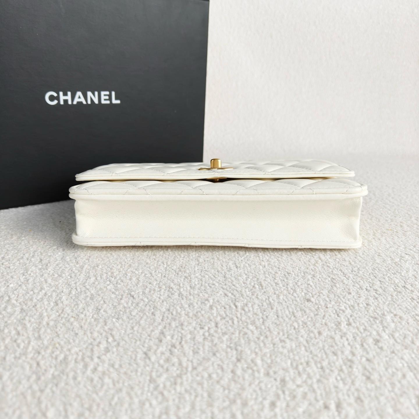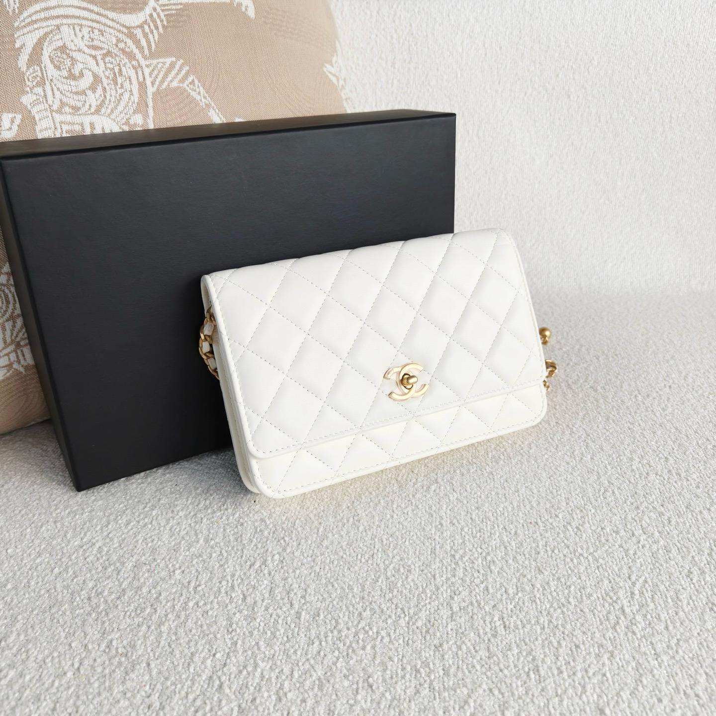Chanel wallet on chain woc white with gold hdw. Comes with dust bag, box, chip and entrupy certificate of authenticity