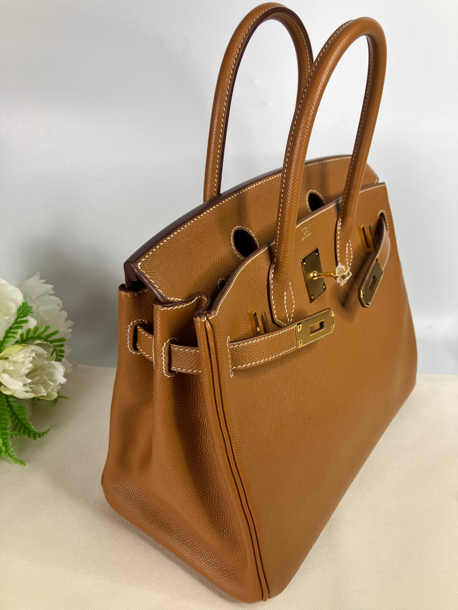 Hermes Birkin 30 gold x gold Epsom stamp Z (2021). Full set with box, lock, key, original receipt and authentication certificate