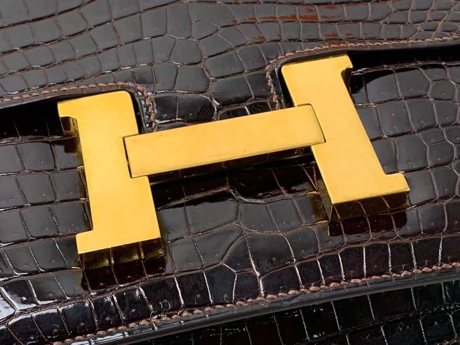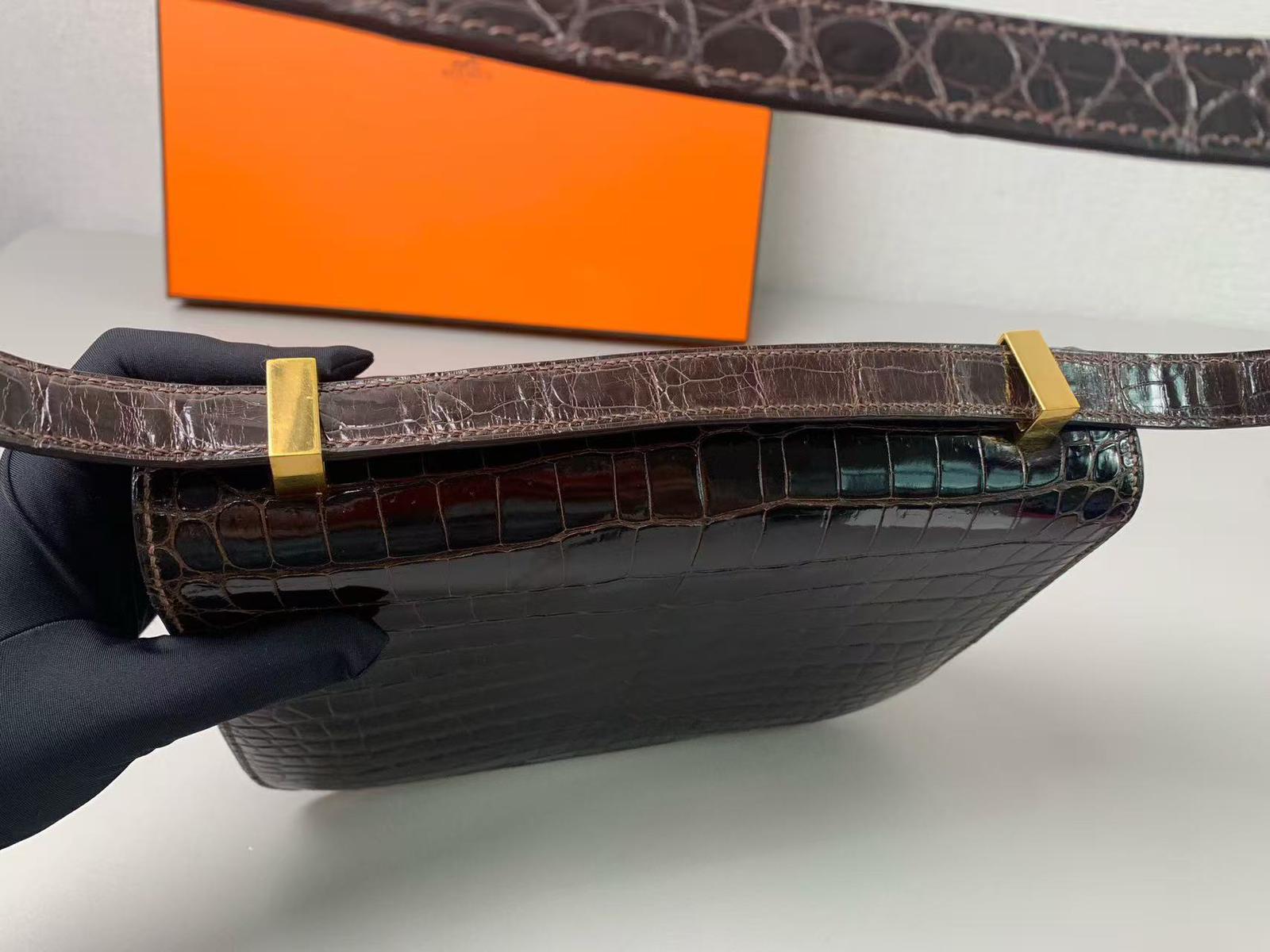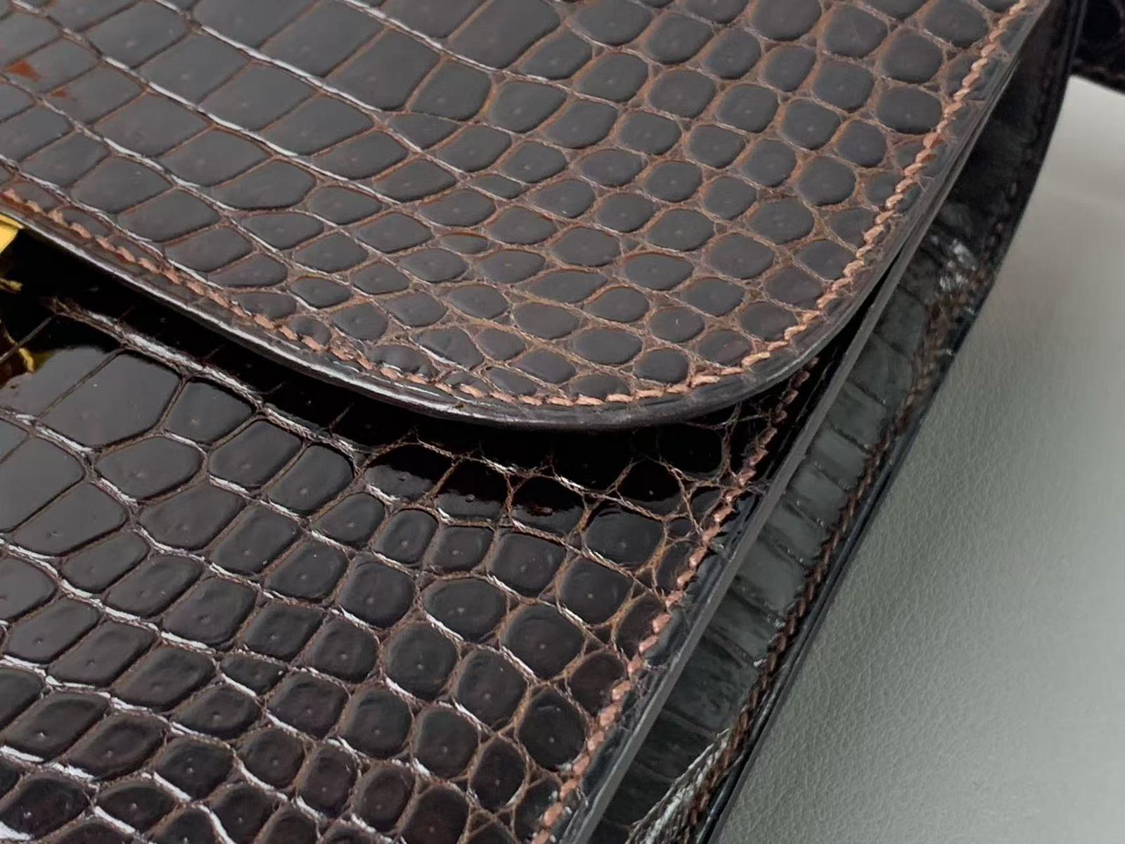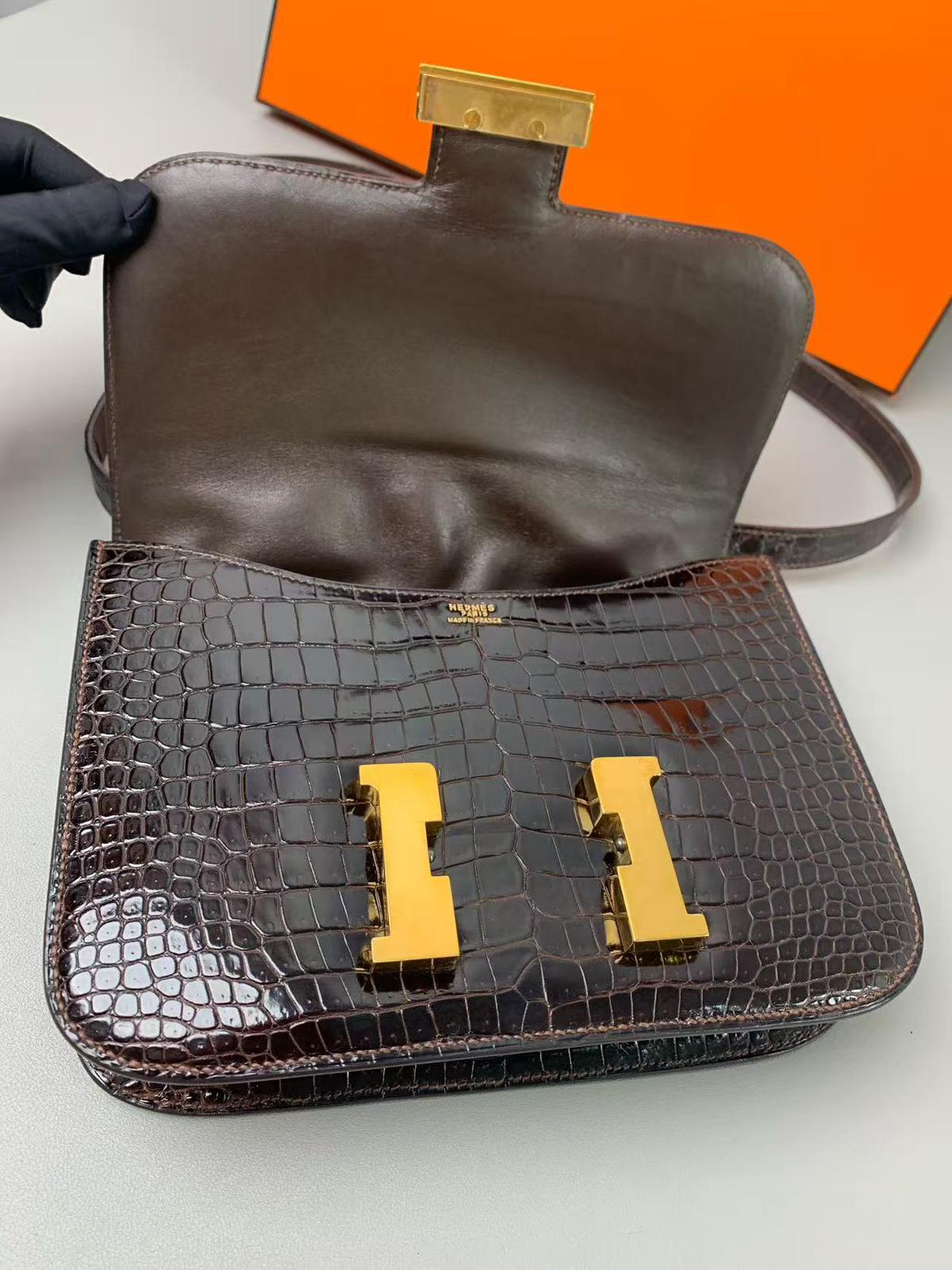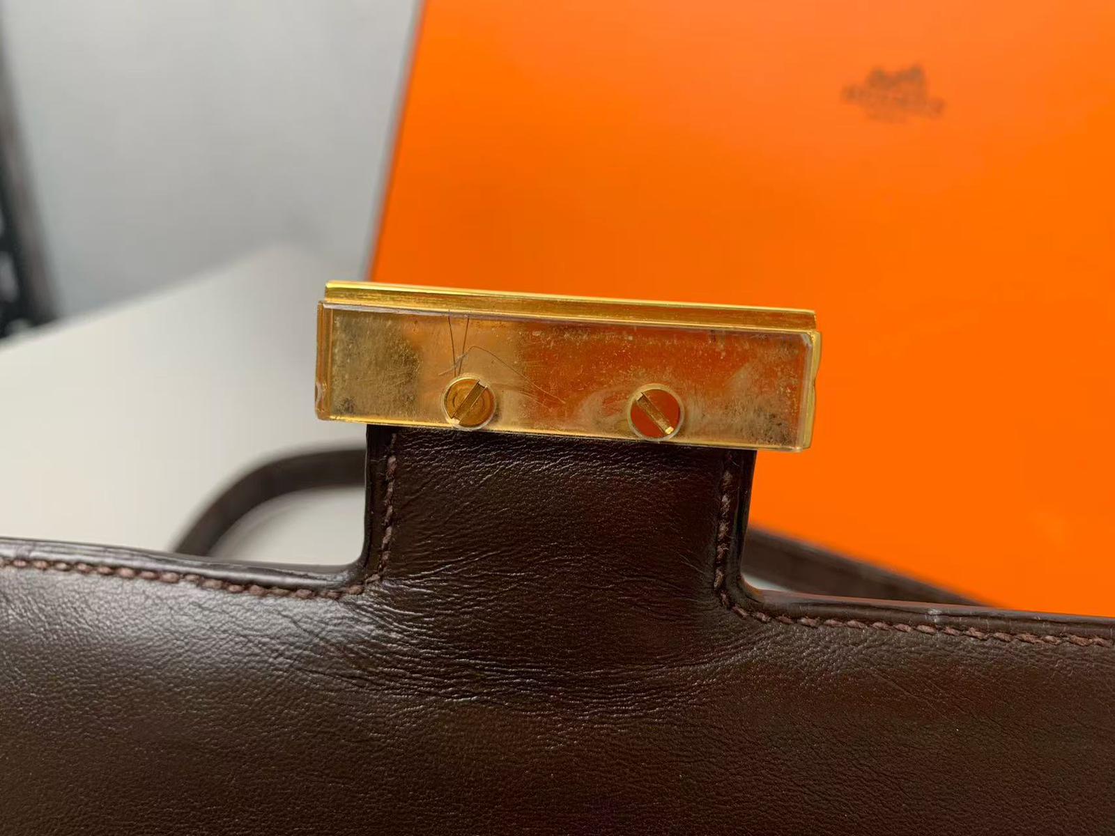 Vintage Hermes constance 23 brown crocodile, with gold hdw