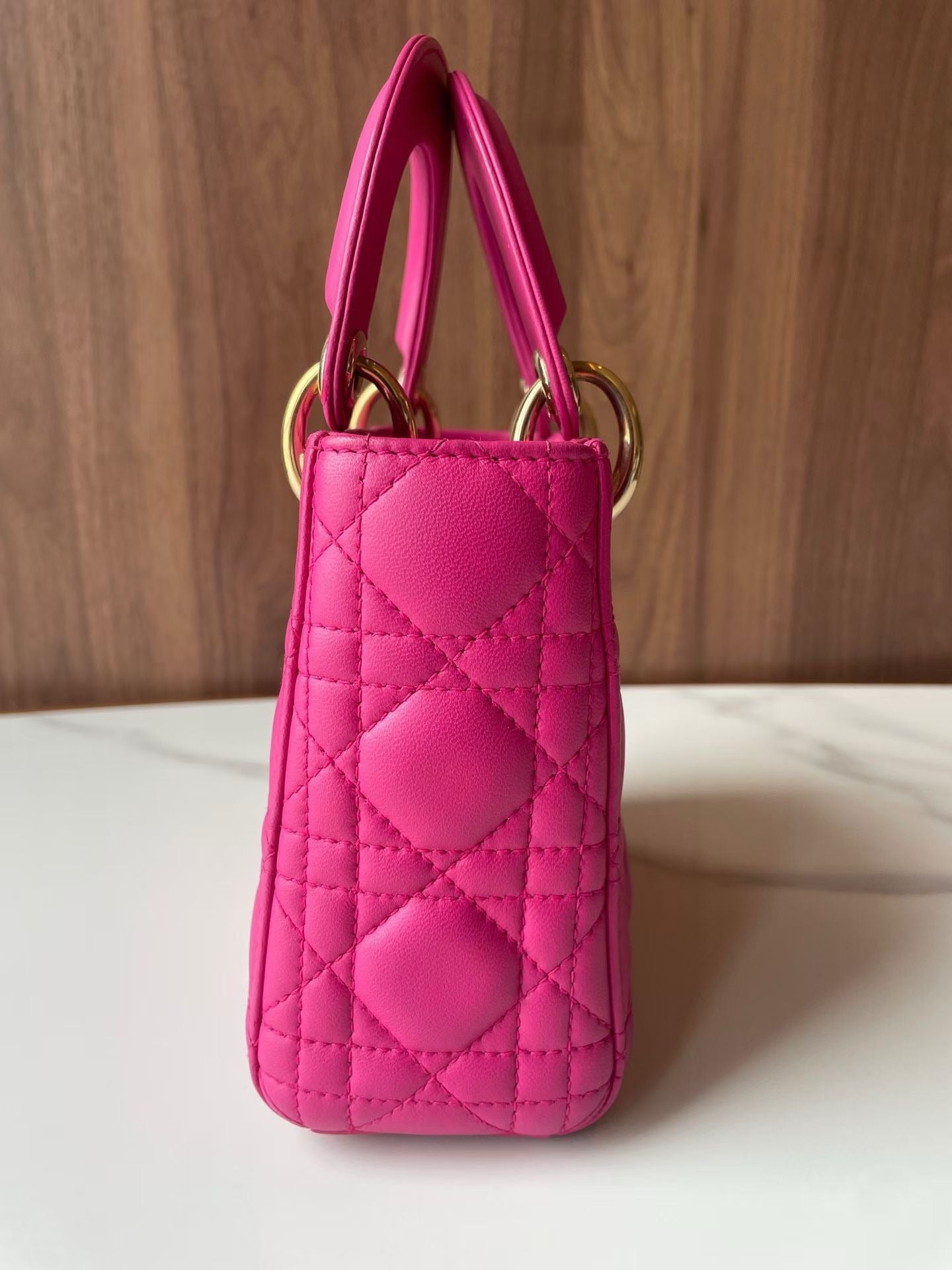 Lady Dior mini in Barbie pink with gold hdw. Comes with card, strap and authenticity certificate.