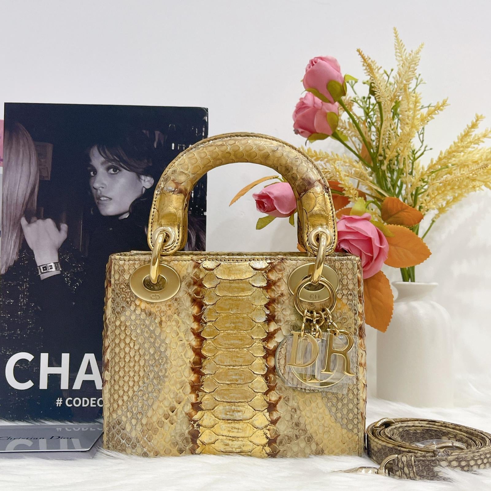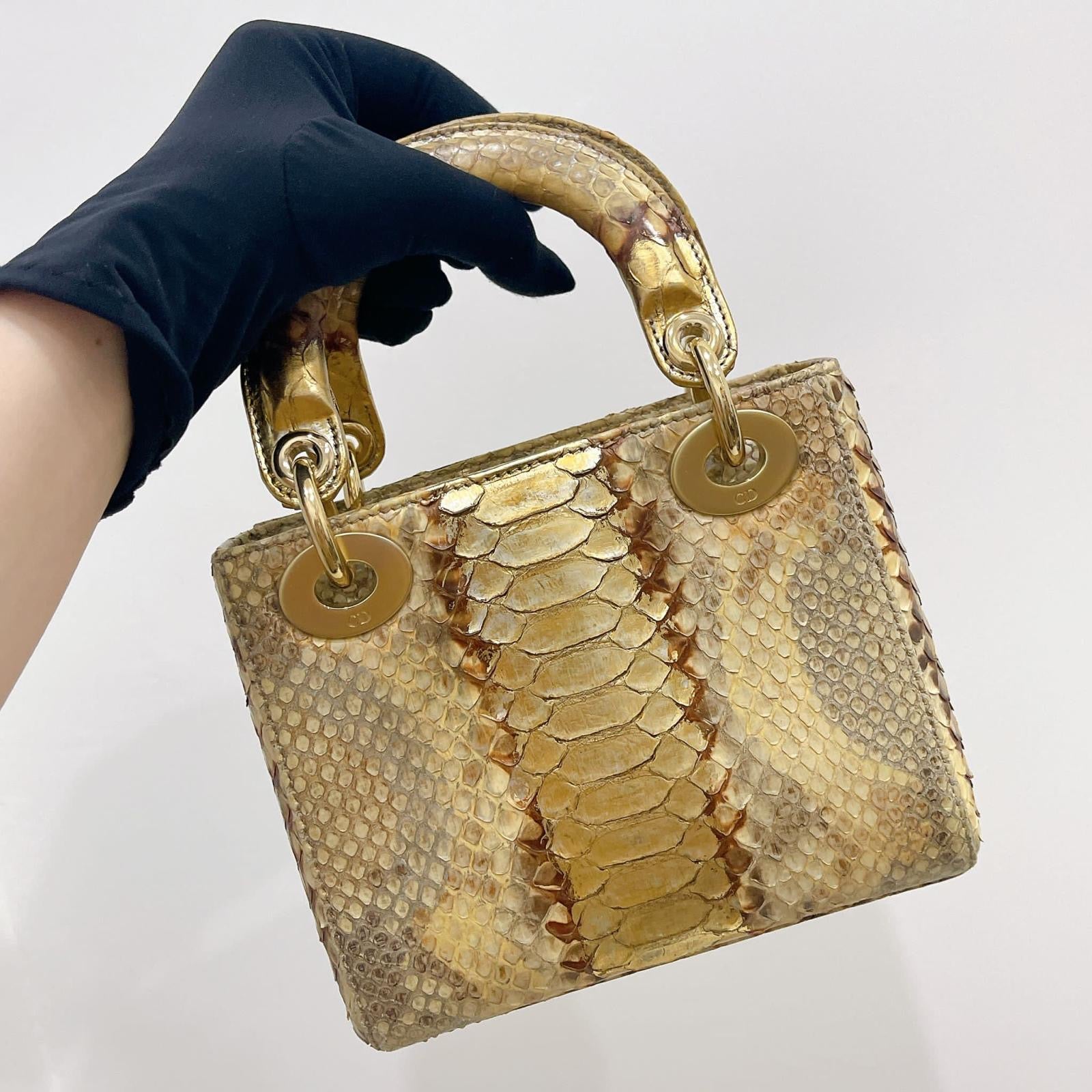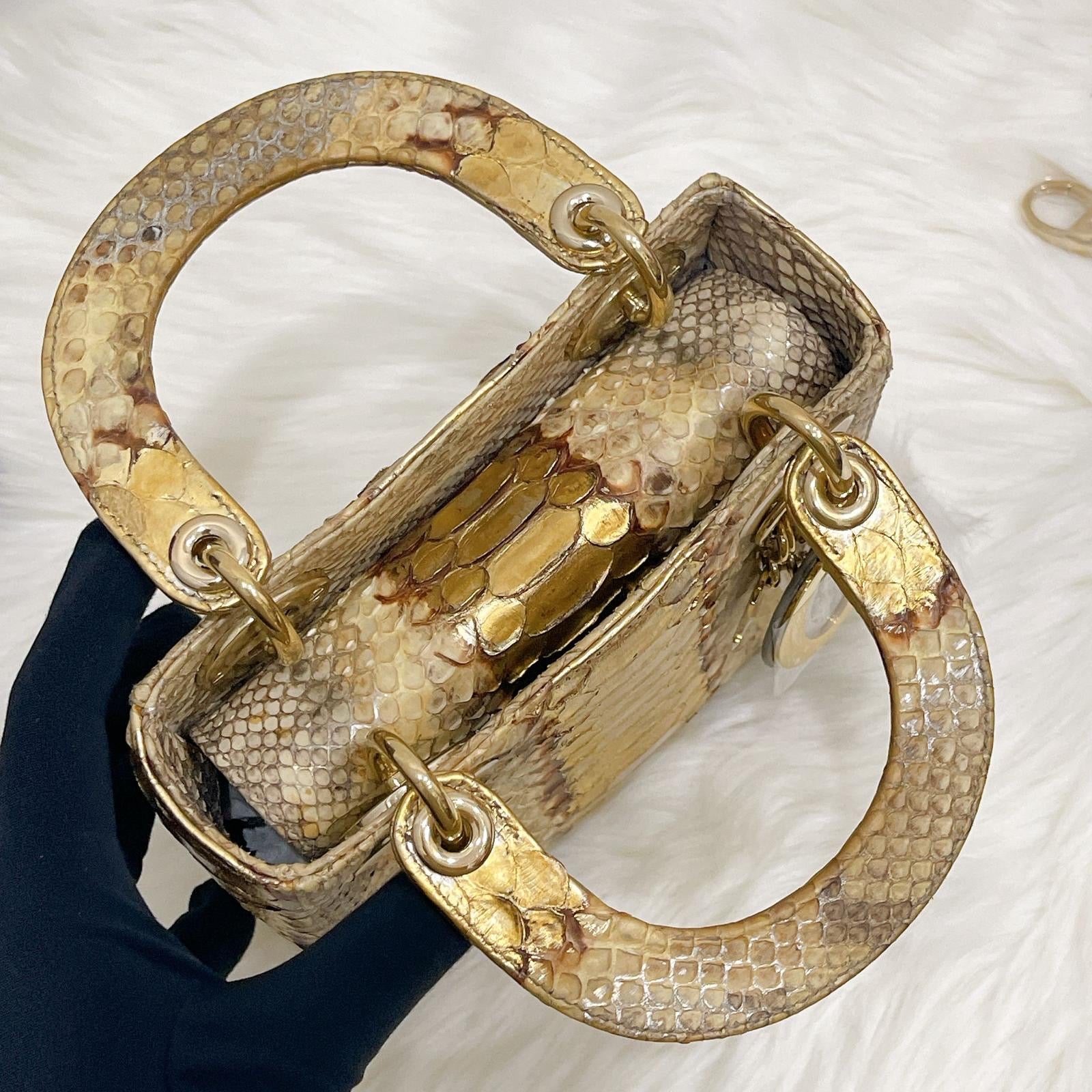 Lady Dior rare exotic snakeskin mini, gold hdw. Comes full set with box, dustbag, strap and entrupy certificate. Year: 2015