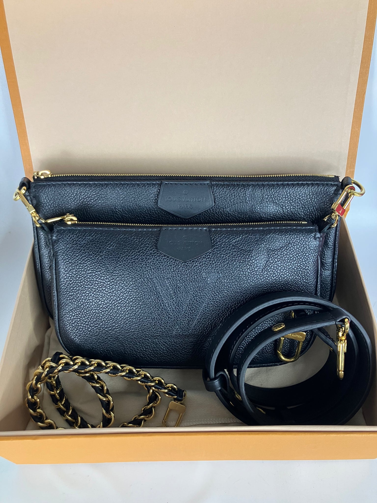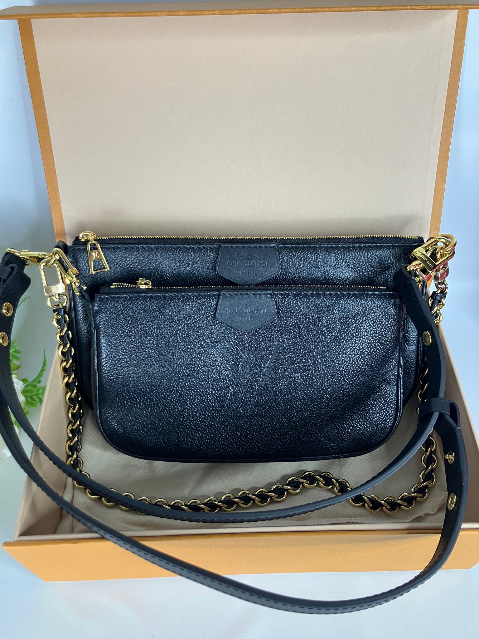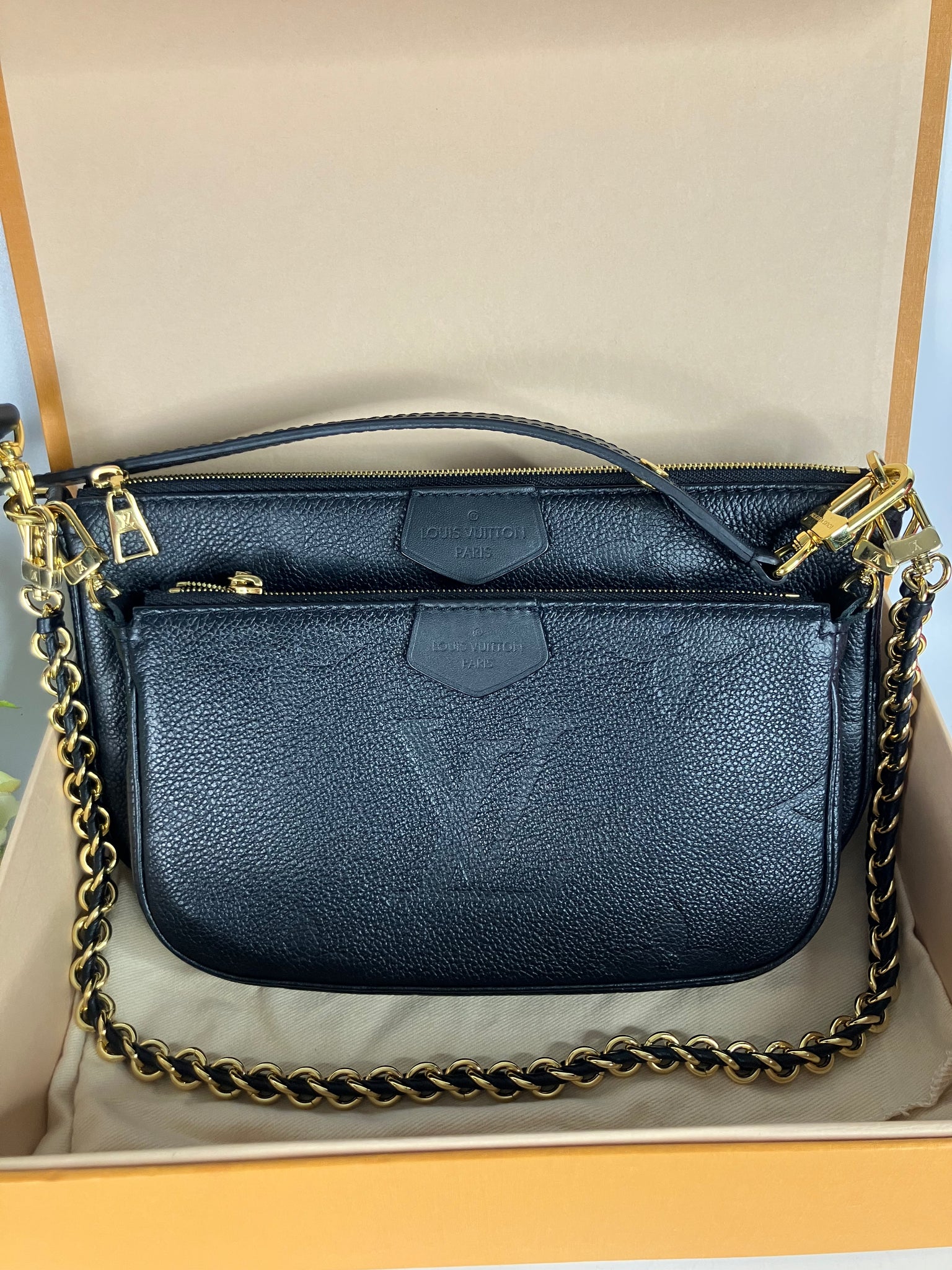 Louis Vuitton black multi pochette accessoires, gold hdw. Monogram empriente leather. Comes with box, dustbag, short chain strap and long adjustable crossbody strap.