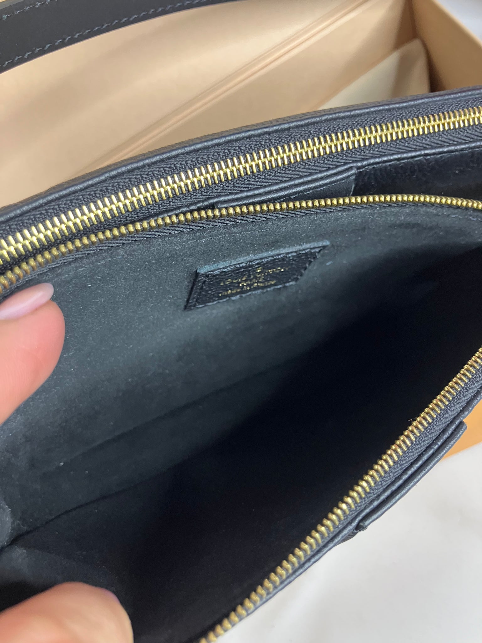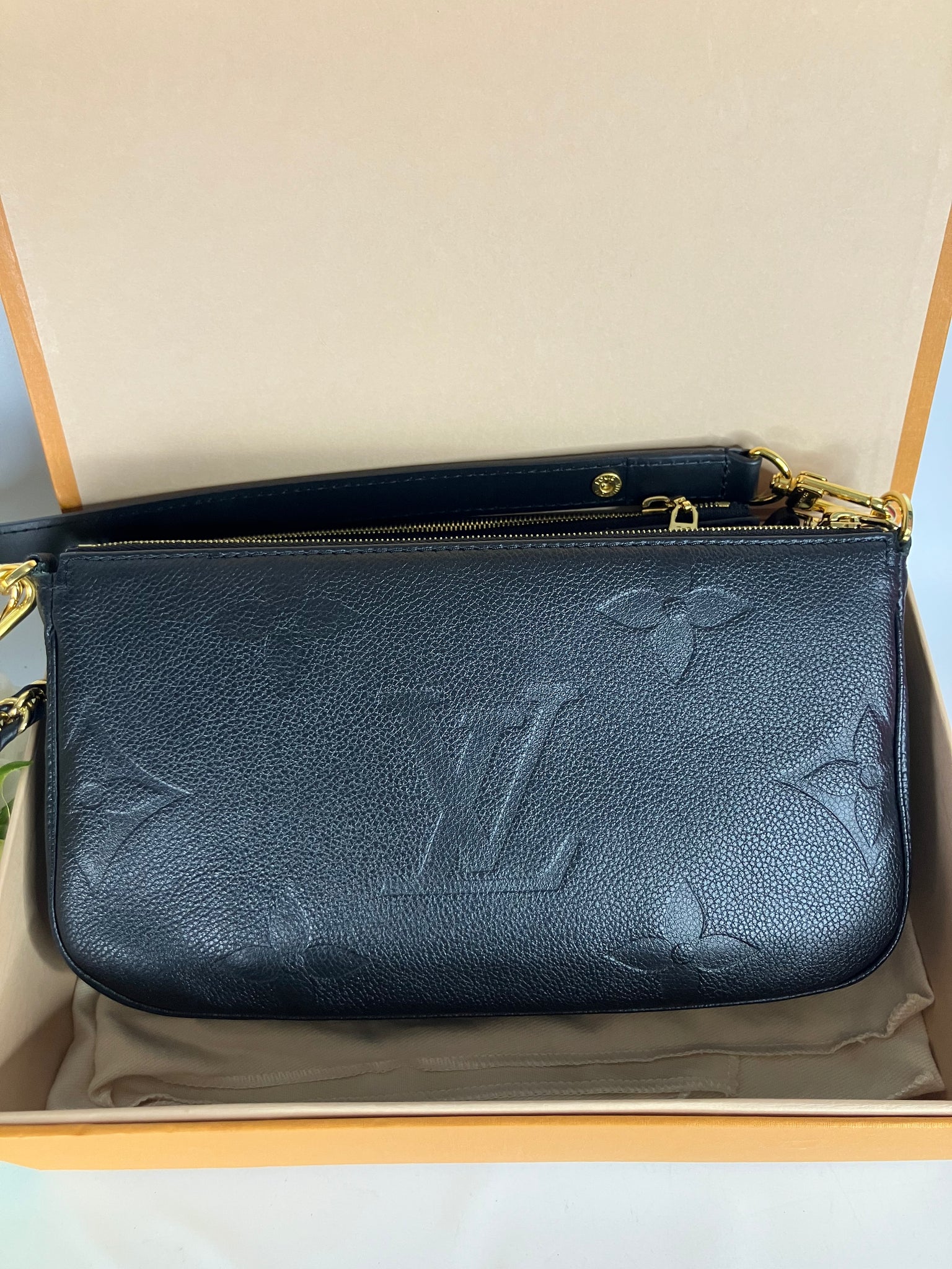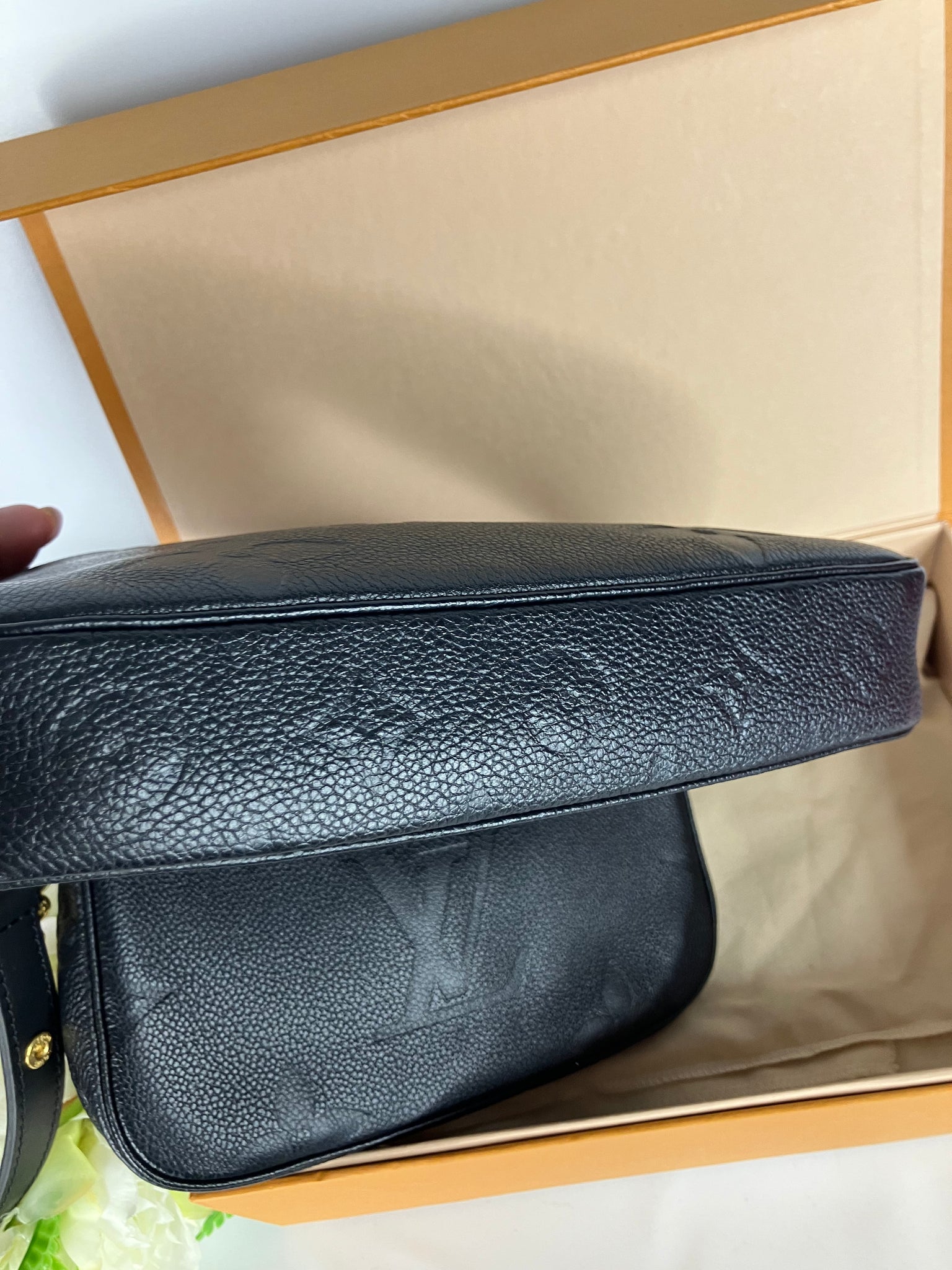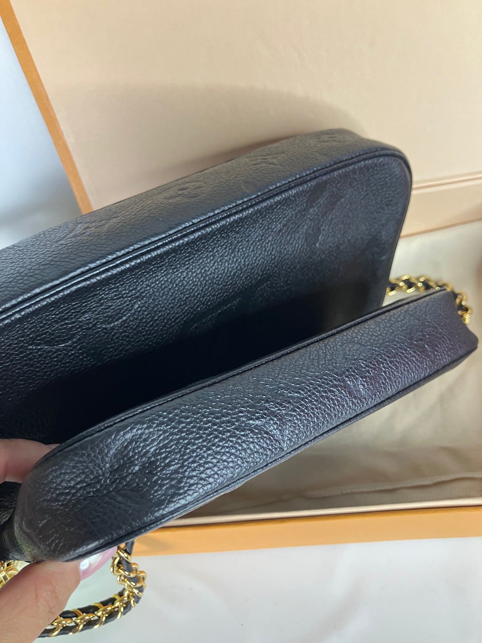 Louis Vuitton black multi pochette accessoires, gold hdw. Monogram empriente leather. Comes with box, dustbag, short chain strap and long adjustable crossbody strap.