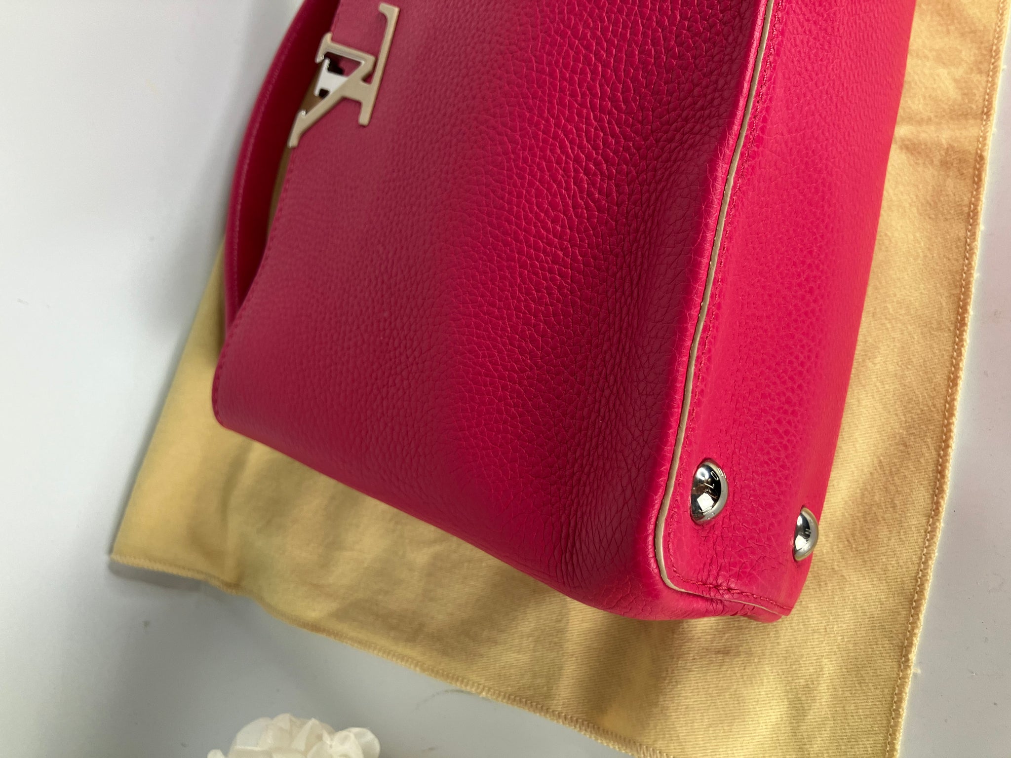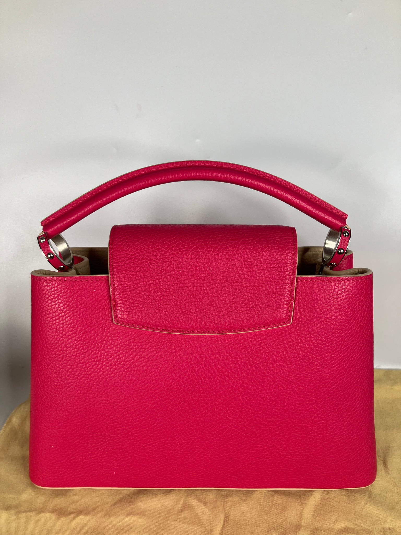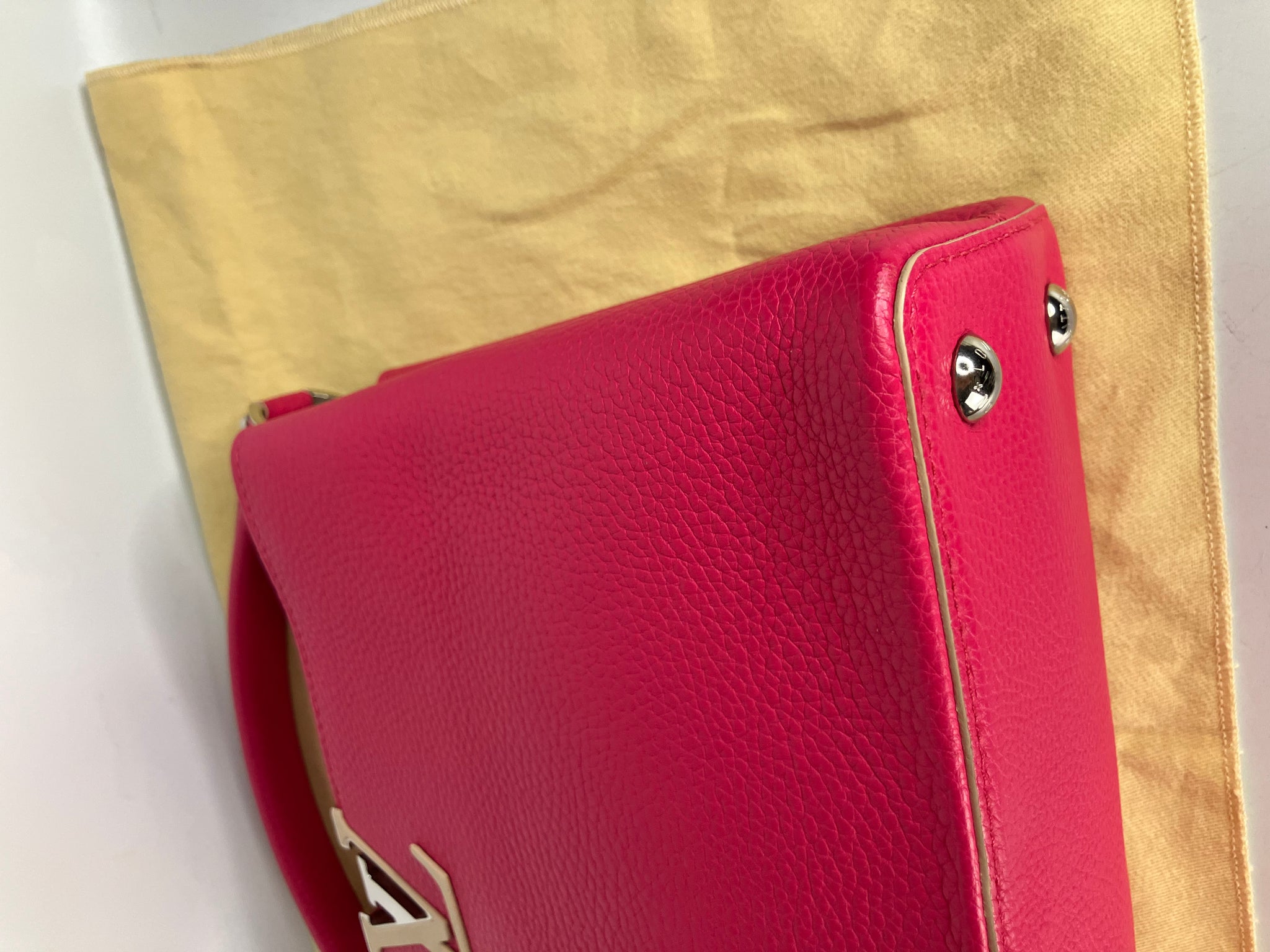 Louis Vuitton capucines PM pink taurillon leather, silver hdw. Comes with dustbag, adjustable strap and entrupy certificate