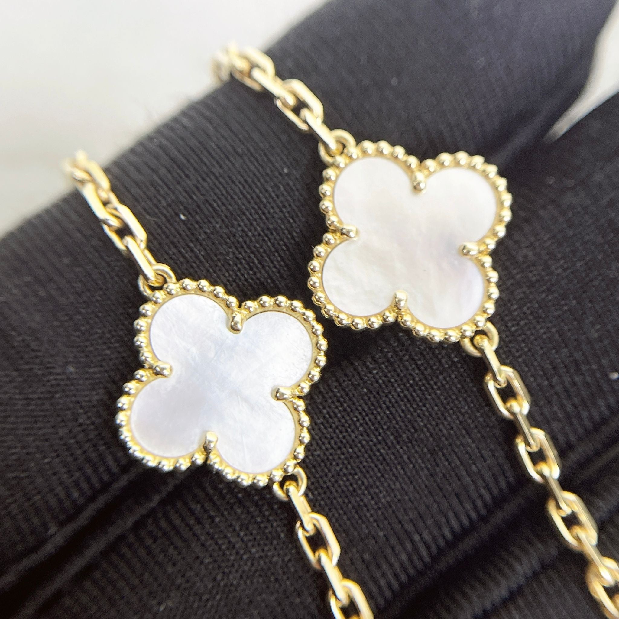Van Cleef & Arpels (VCA) white mother of pearl 18k gold 10 motif vintage Alhambra necklace