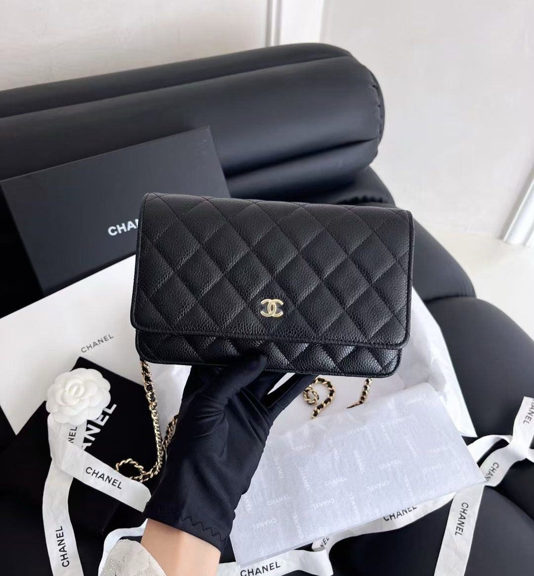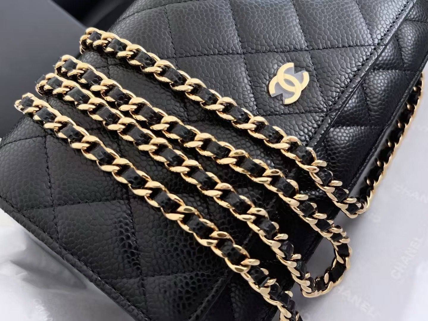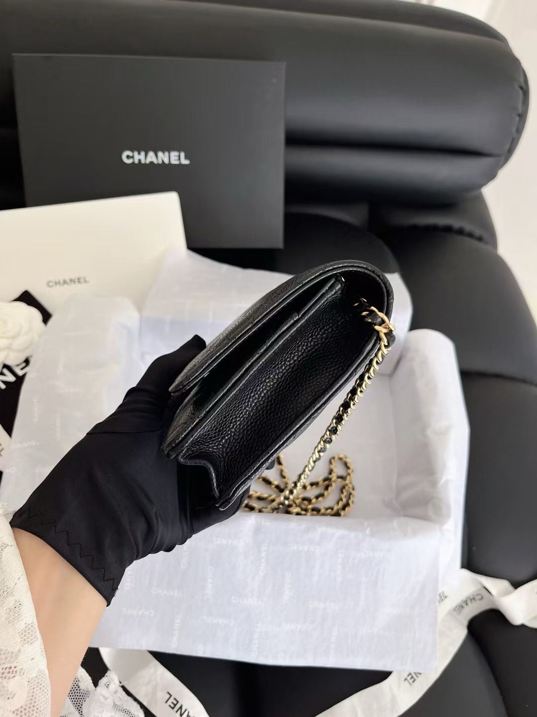 Chanel black caviar microchip WOC (wallet on chain) with gold hdw