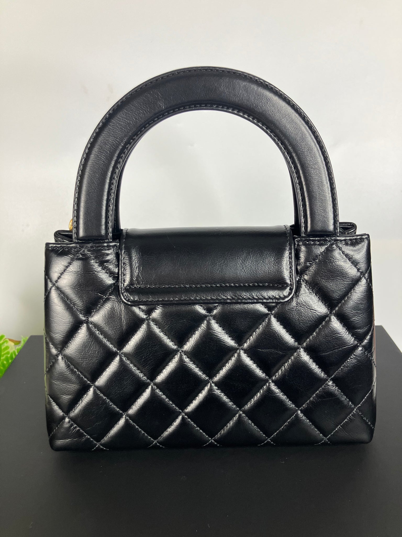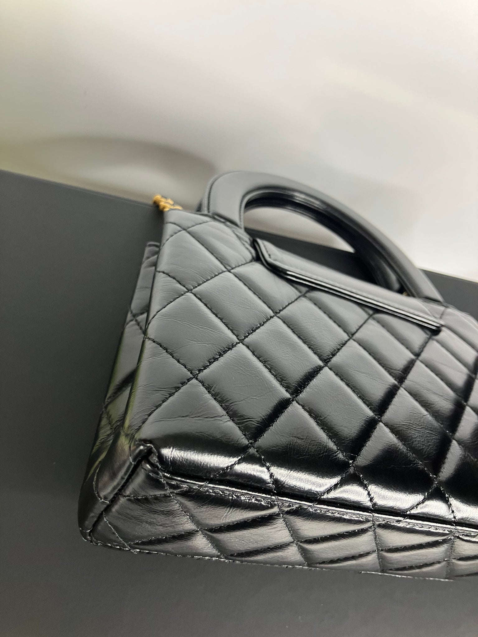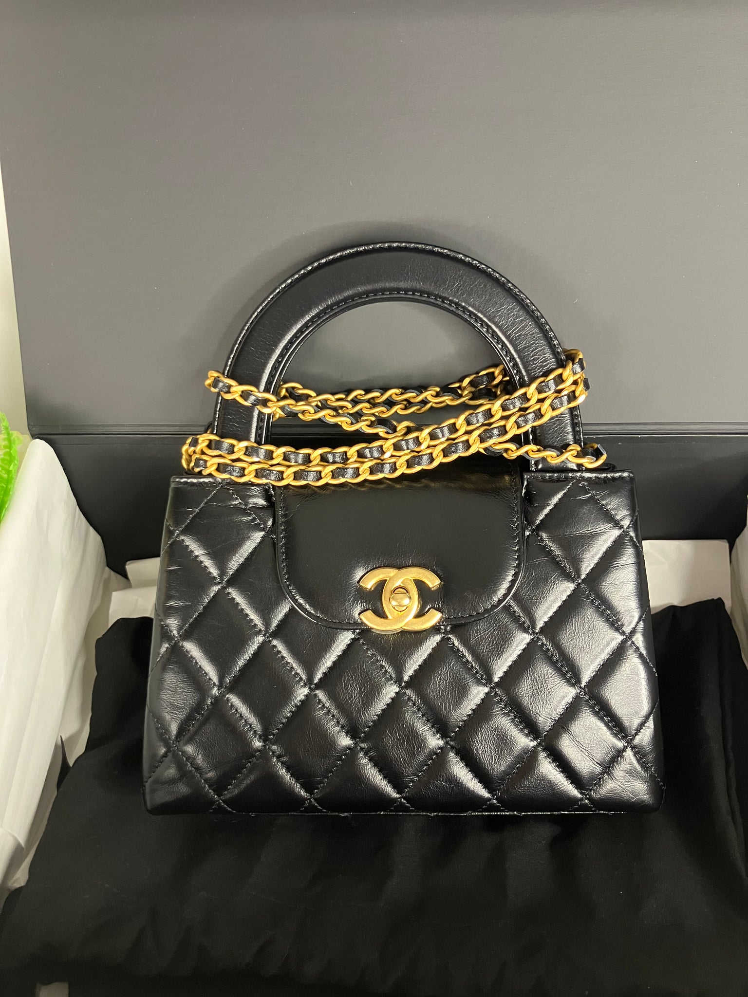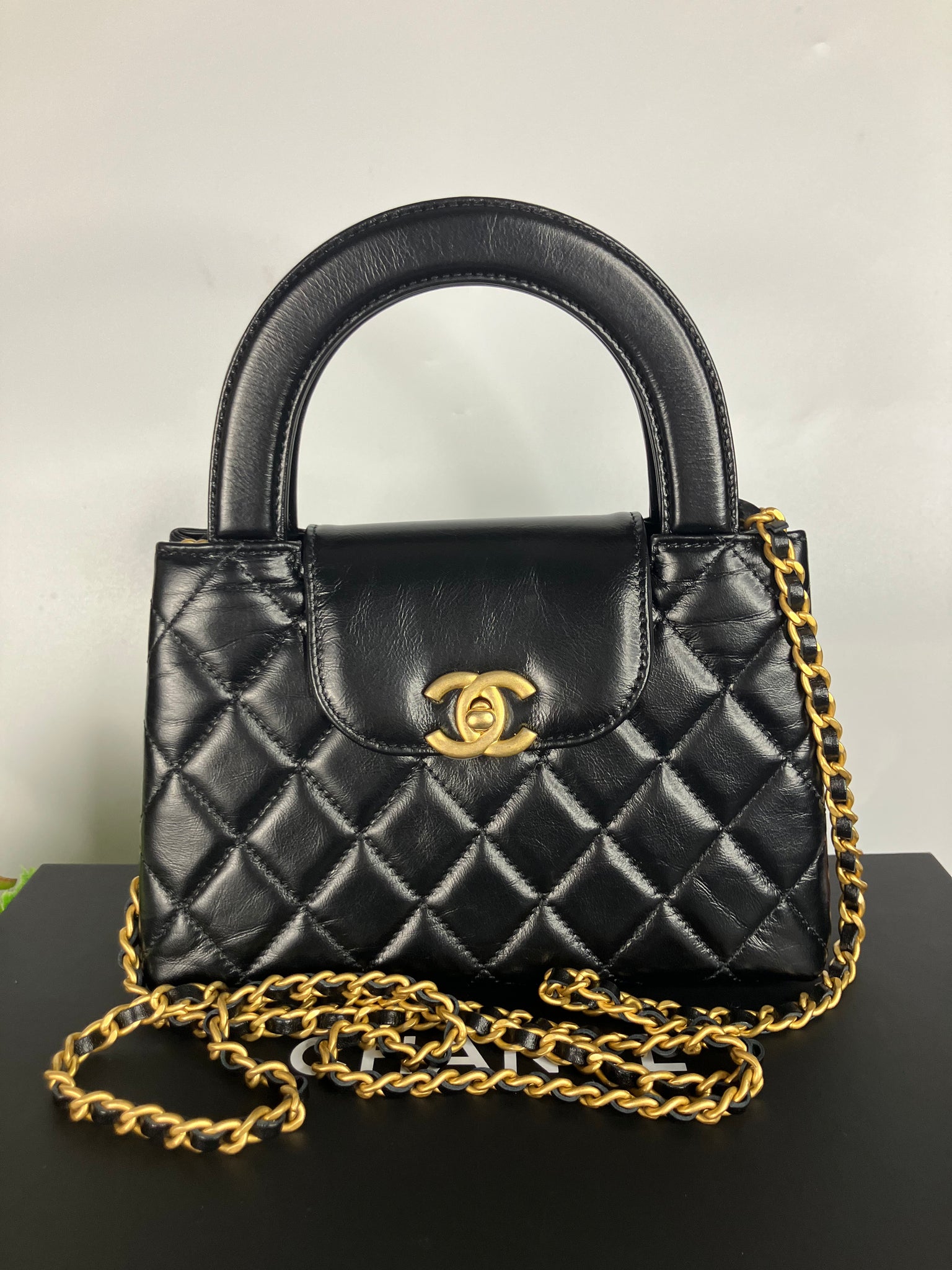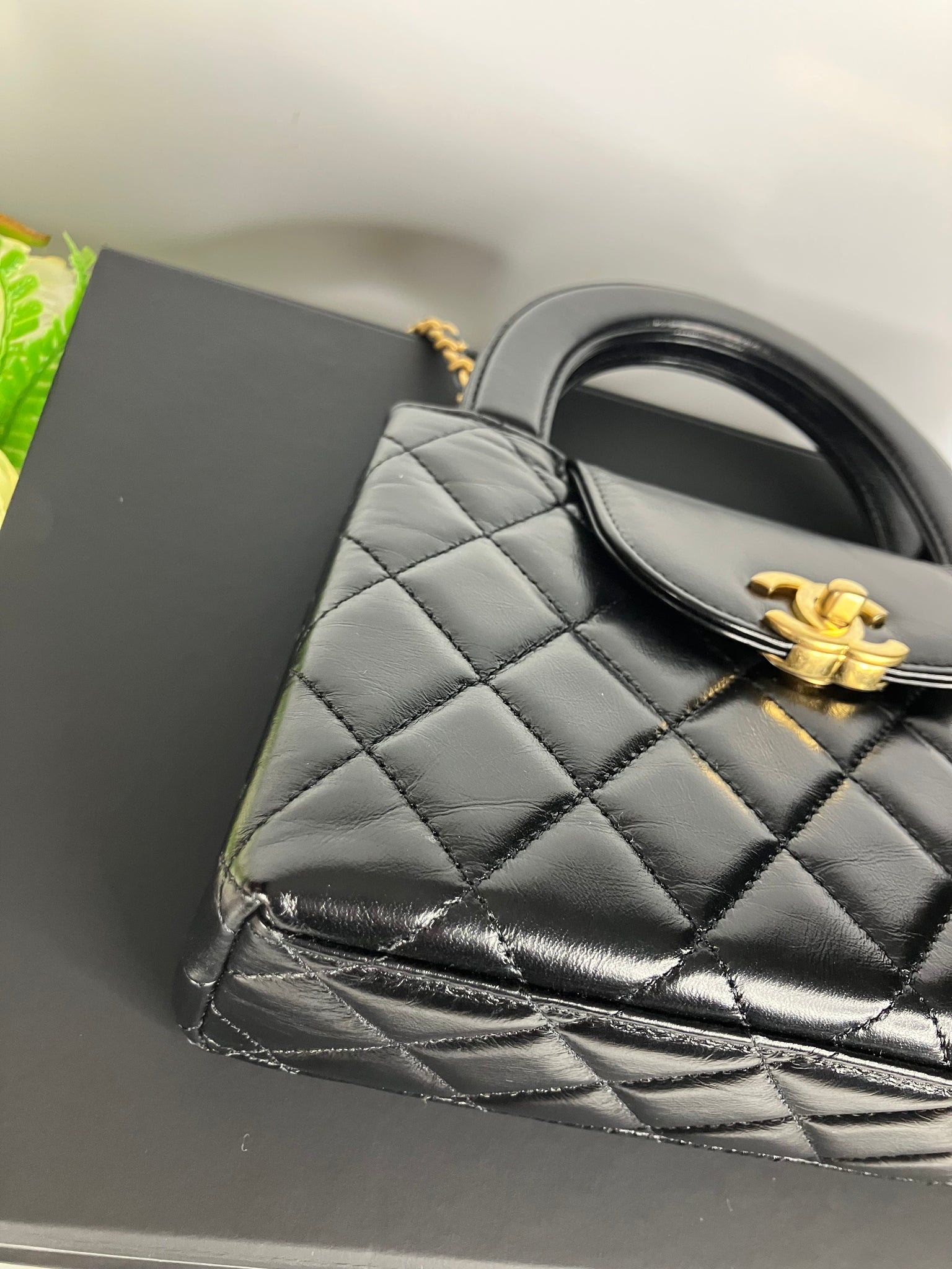 Chanel black Kelly shopper nano (larger size) in shiny calfskin, gold hdw. Full set with box, dustbag, chip and entrupy certificate of authenticity