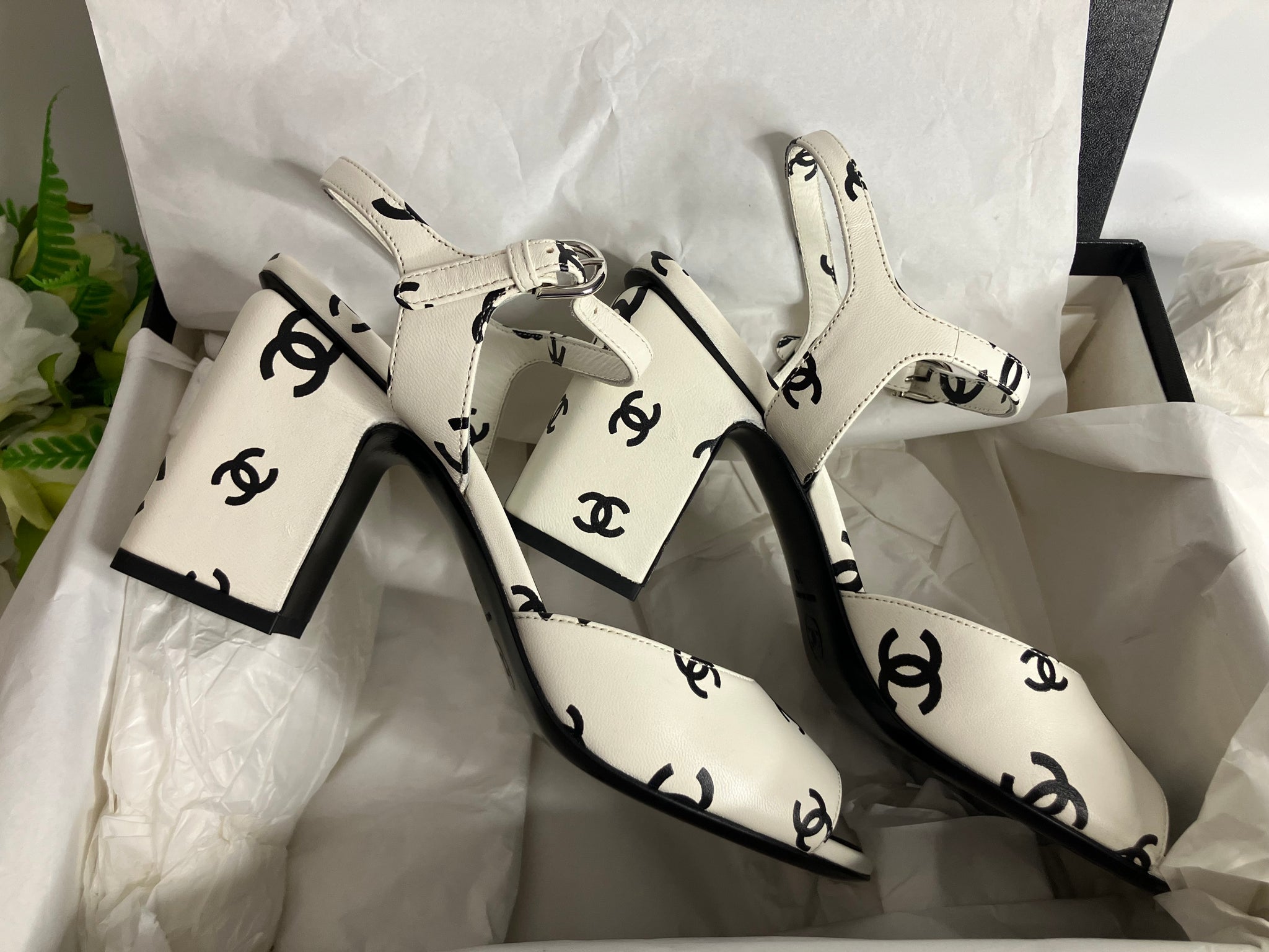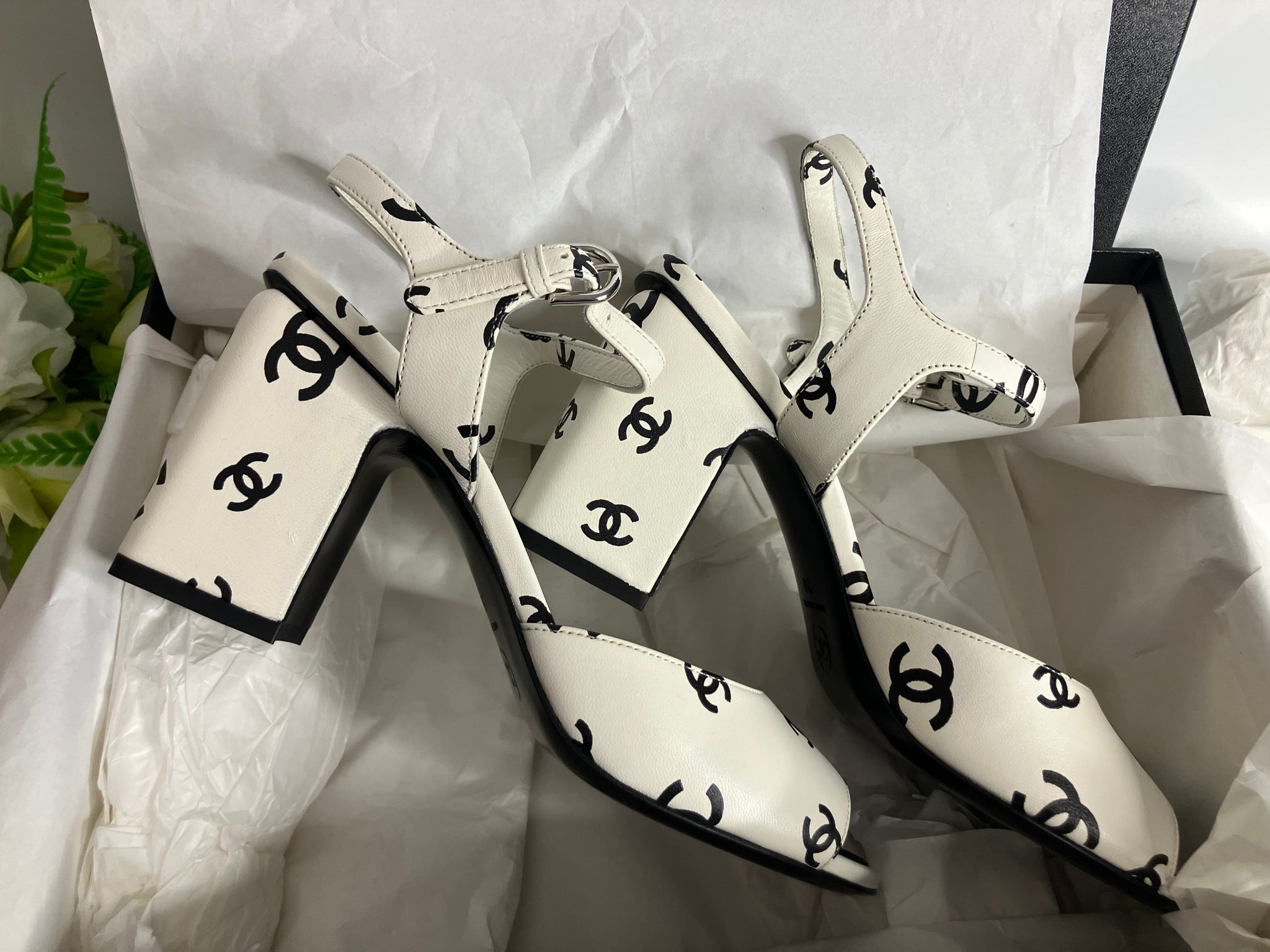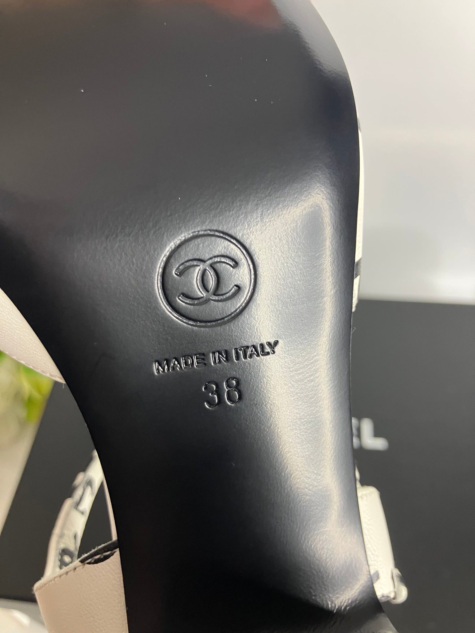 Chanel white and black brand new lambskin heels, comes with box and two dustbags