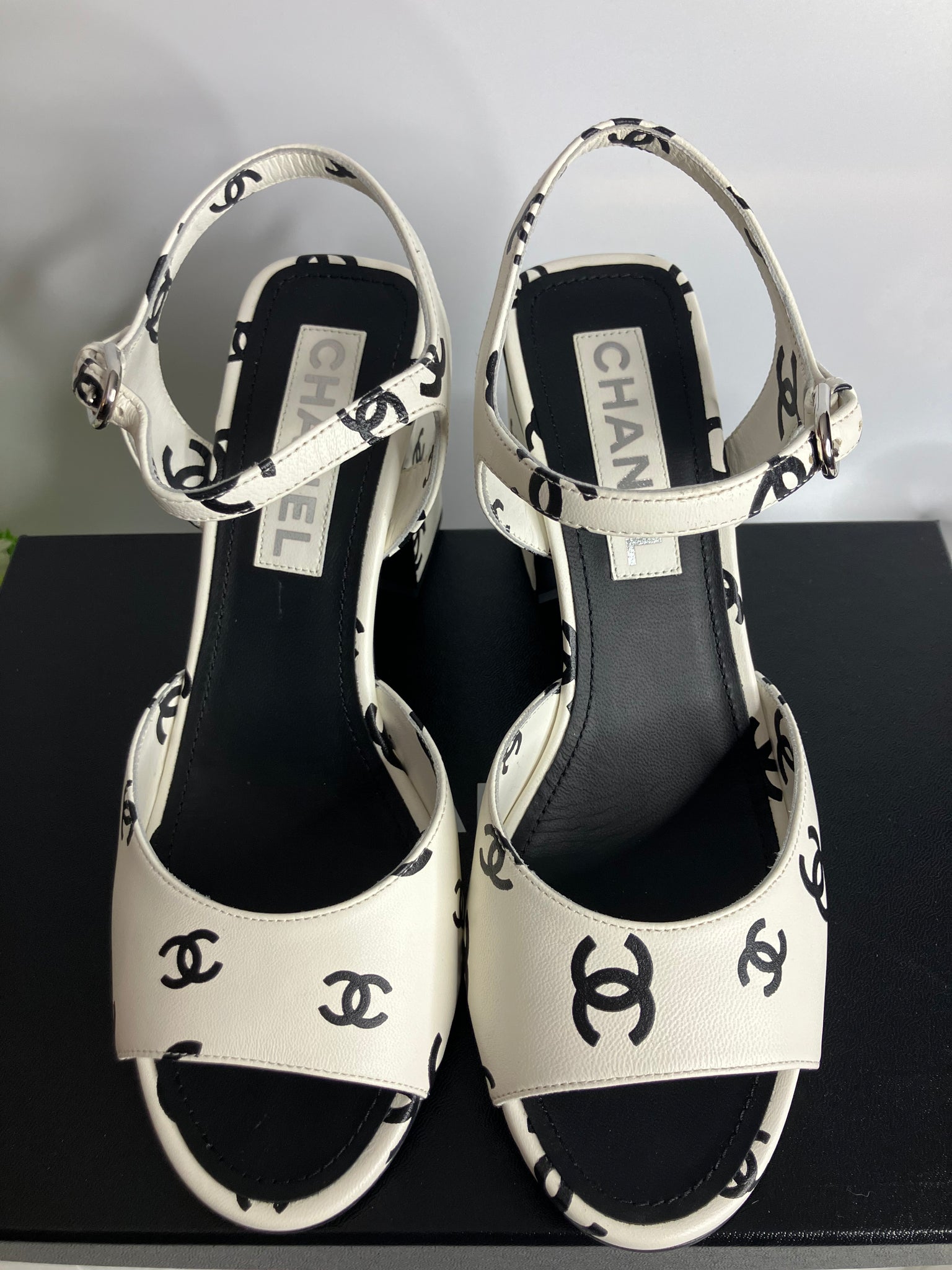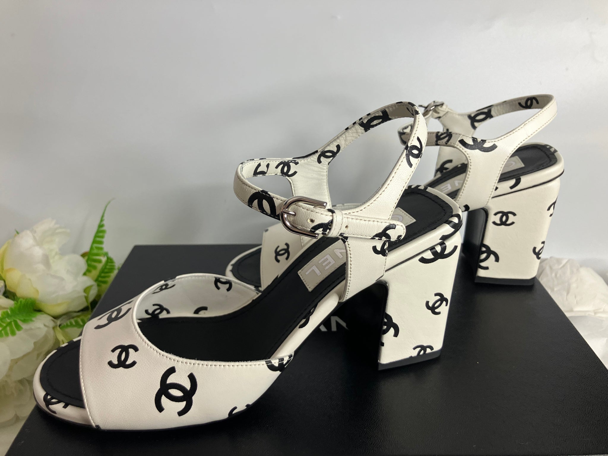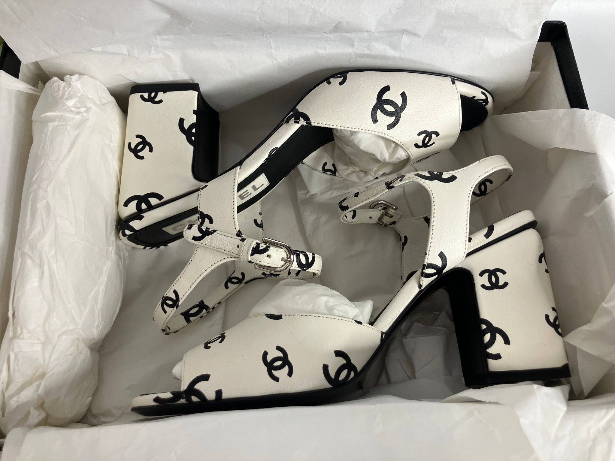 Chanel white and black brand new lambskin heels, comes with box and two dustbags