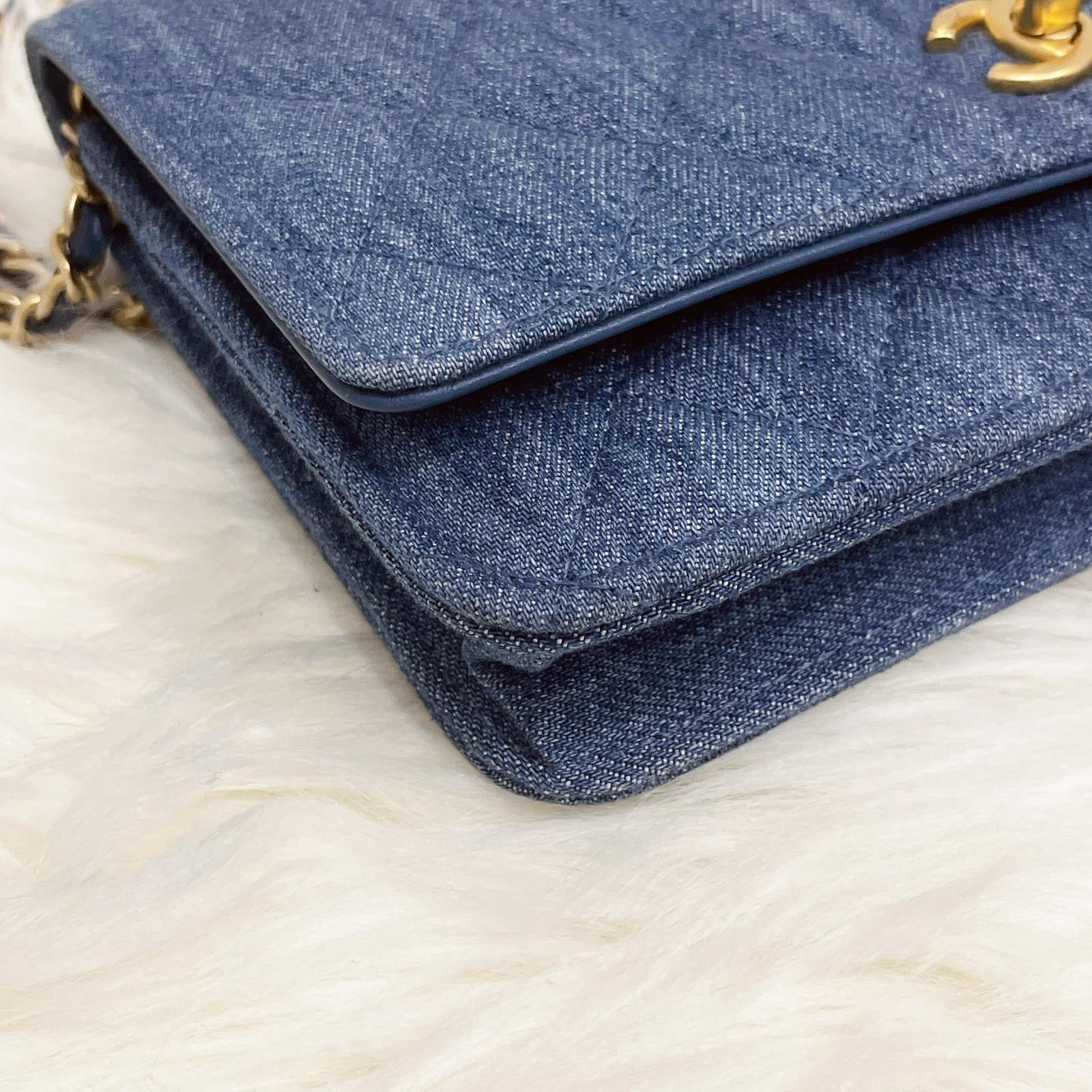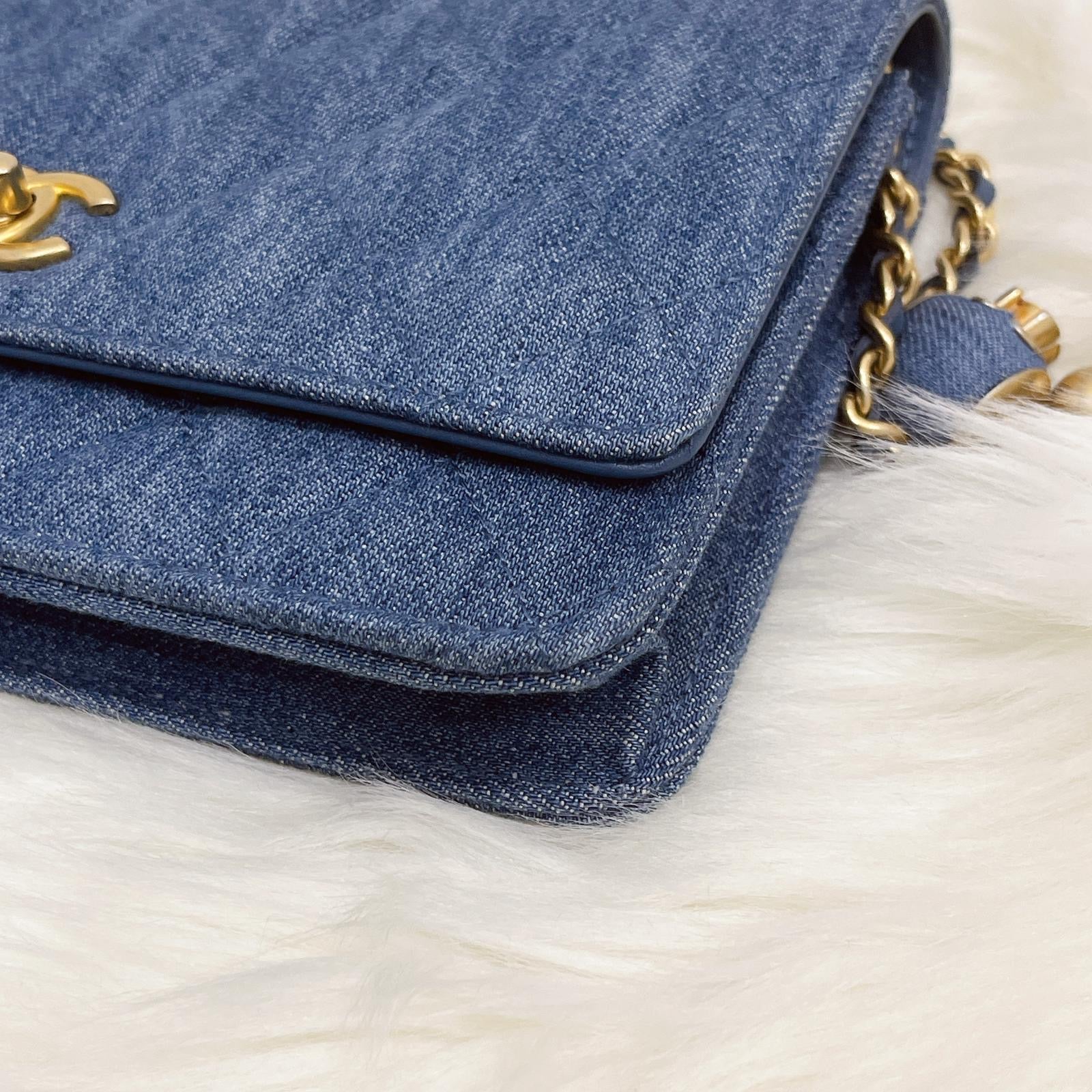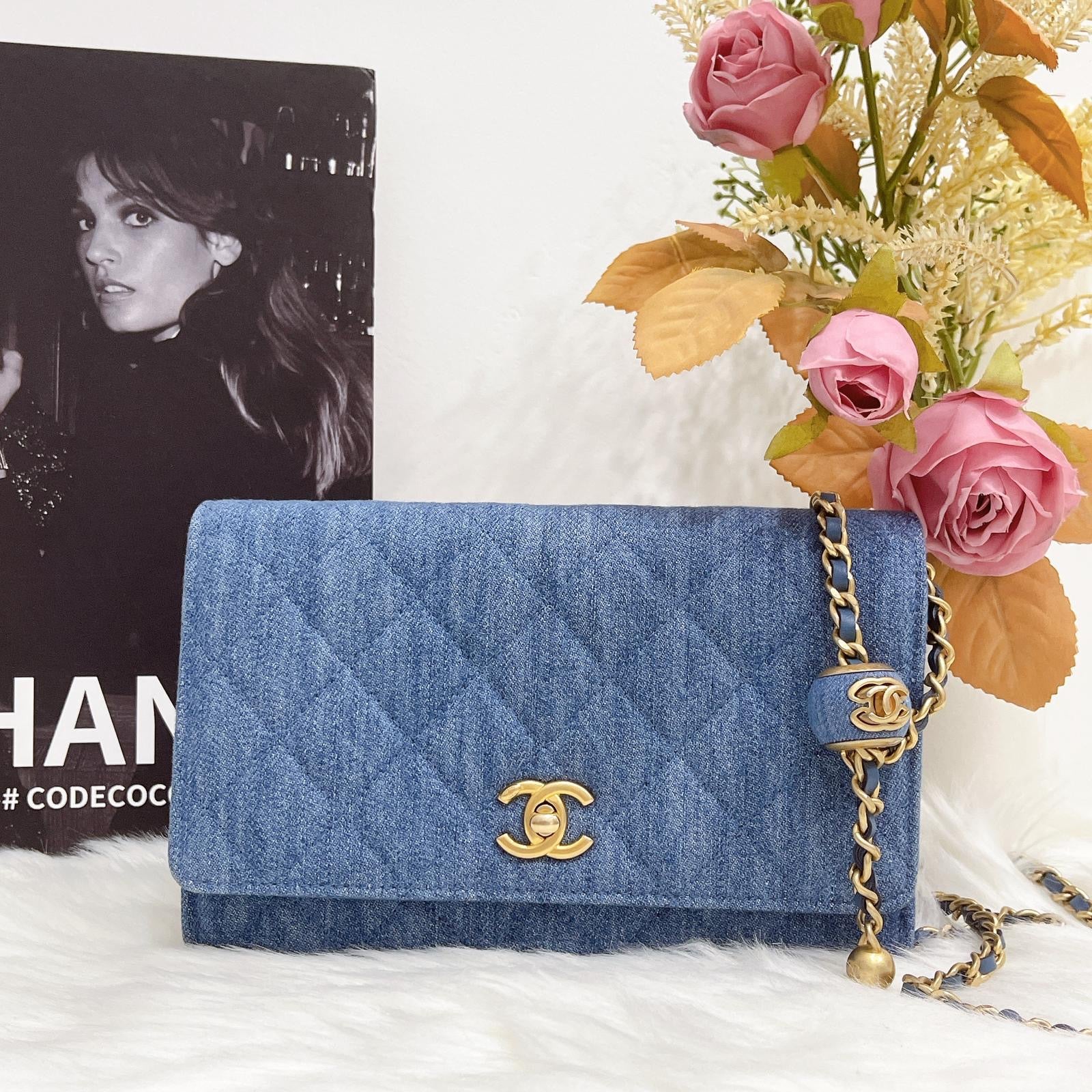 Chanel pearl crush woc denim 22c with box, dust bag, chip
