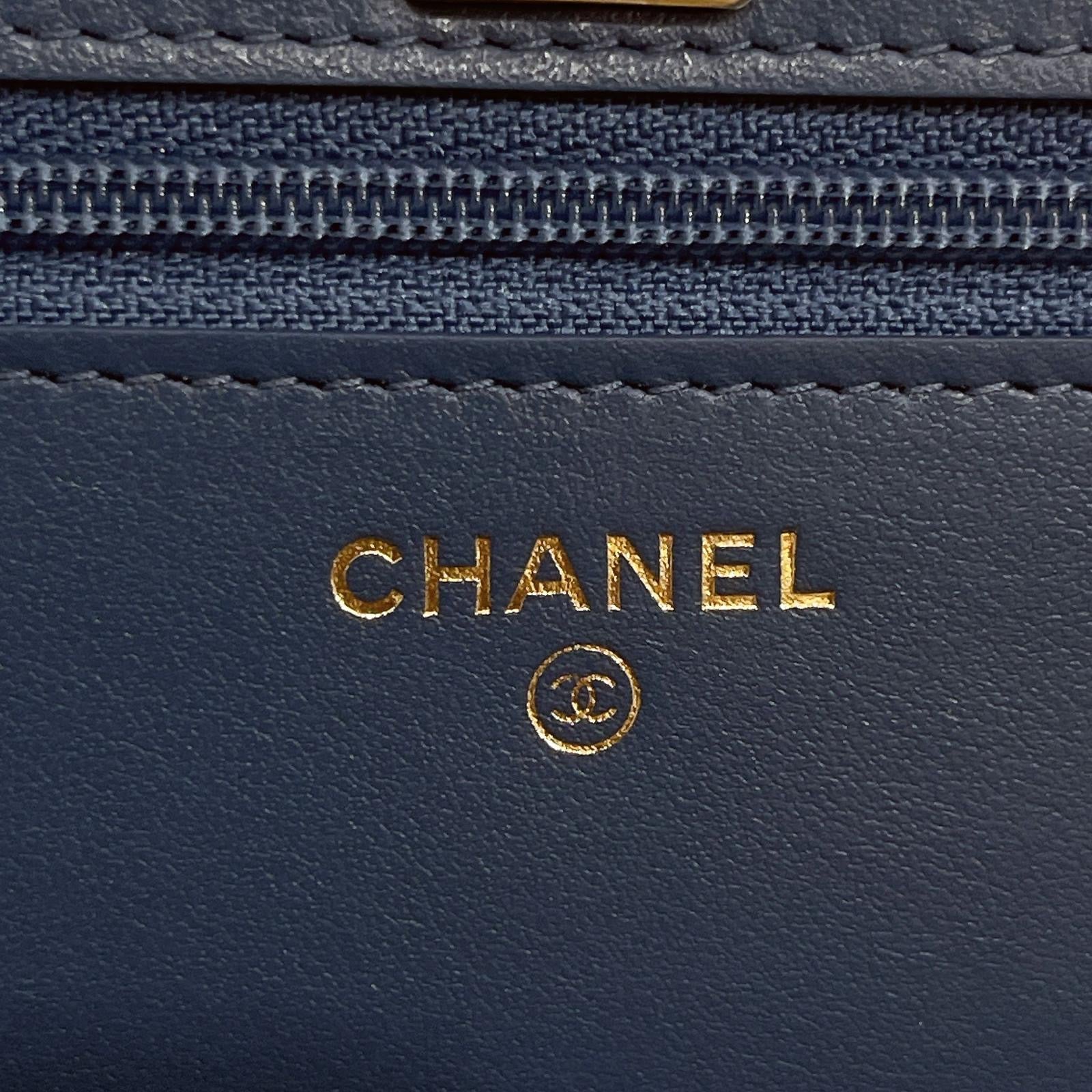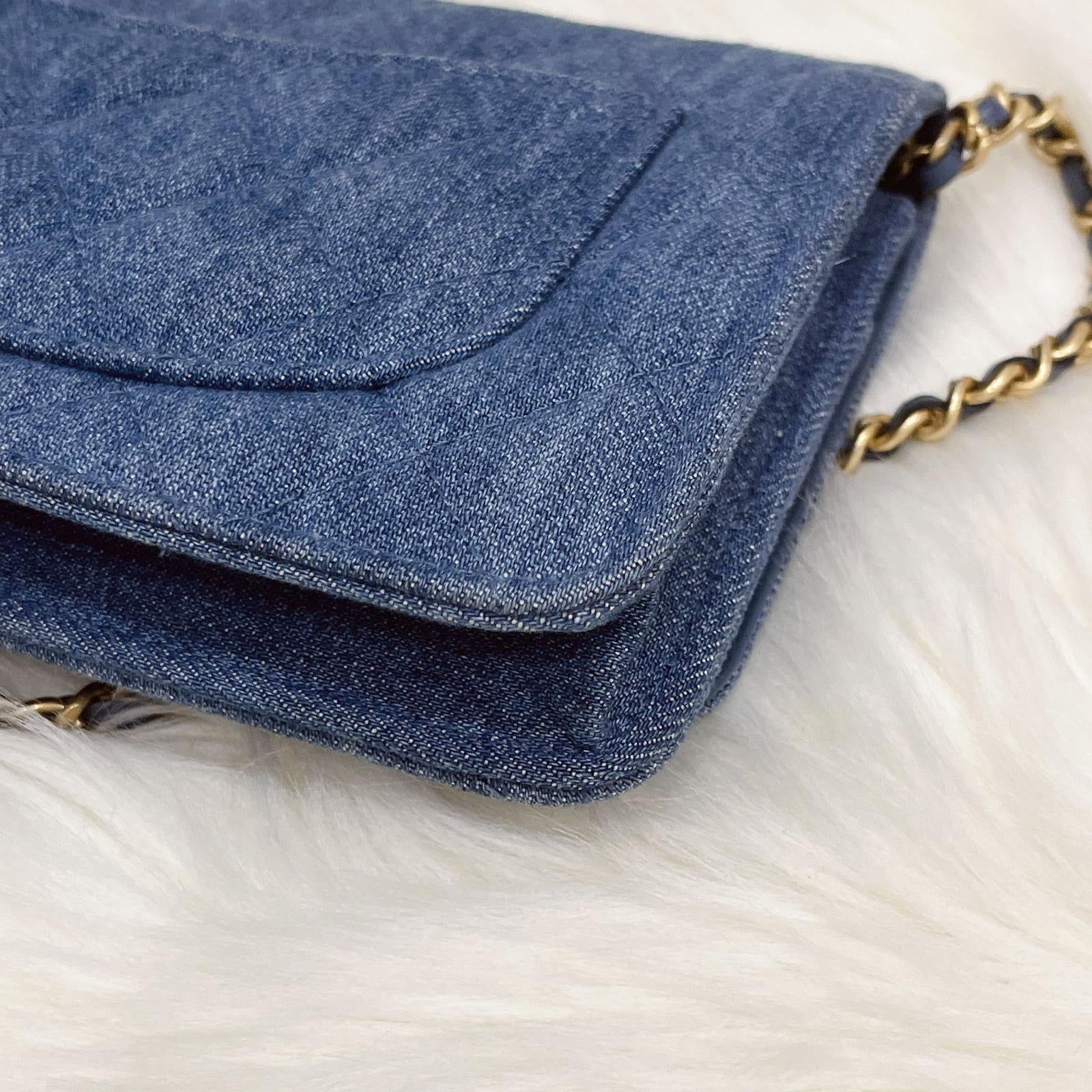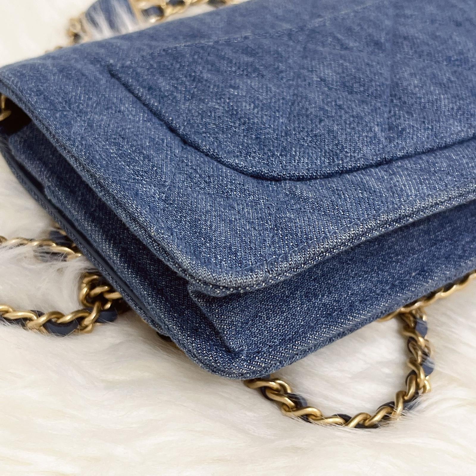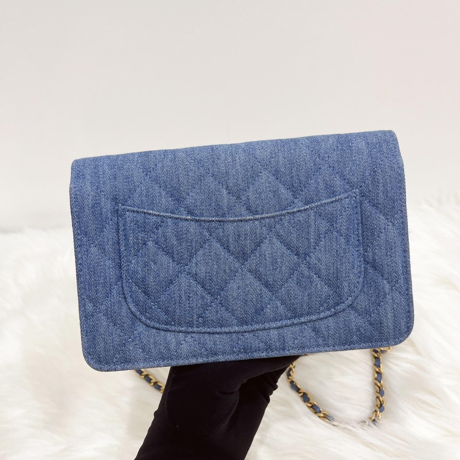 Chanel pearl crush woc denim 22c with box, dust bag, chip